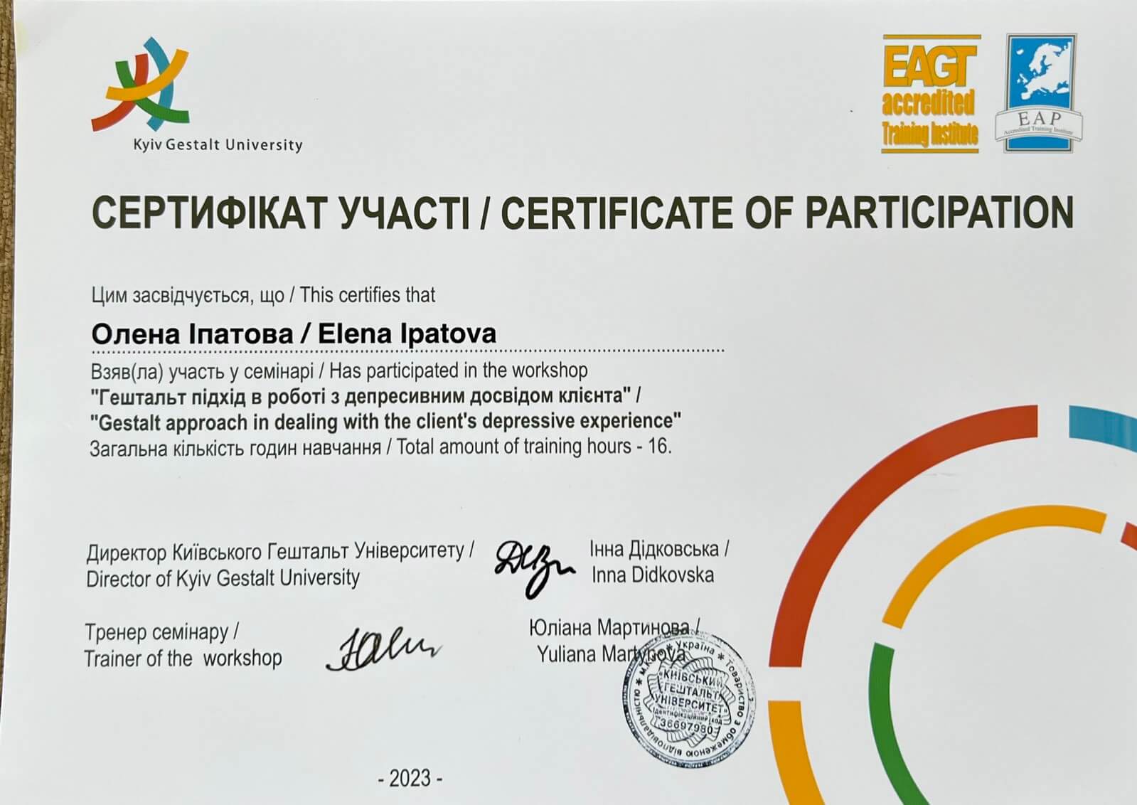 Гештальт-підхід в роботі з депресивним досвідом клієнта (Мартинова Ю.)