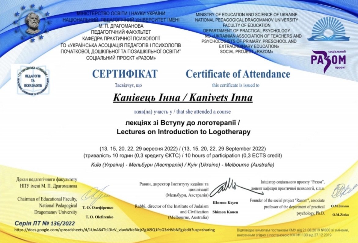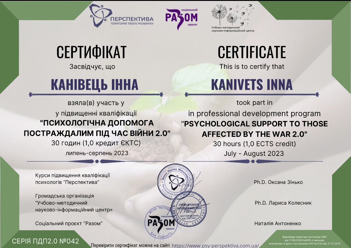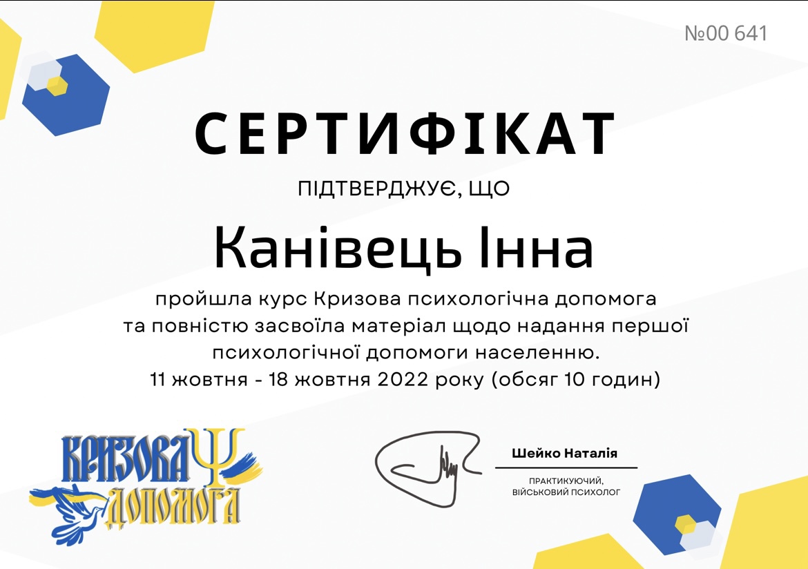 Привіт! Мене звати Канівець Інна, і я – практикуючий клінічний психолог. Сімейний психолог