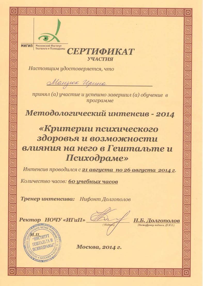 -Гештальт-терапія 1 і 2 ступінь з 2009 - 2016 рік