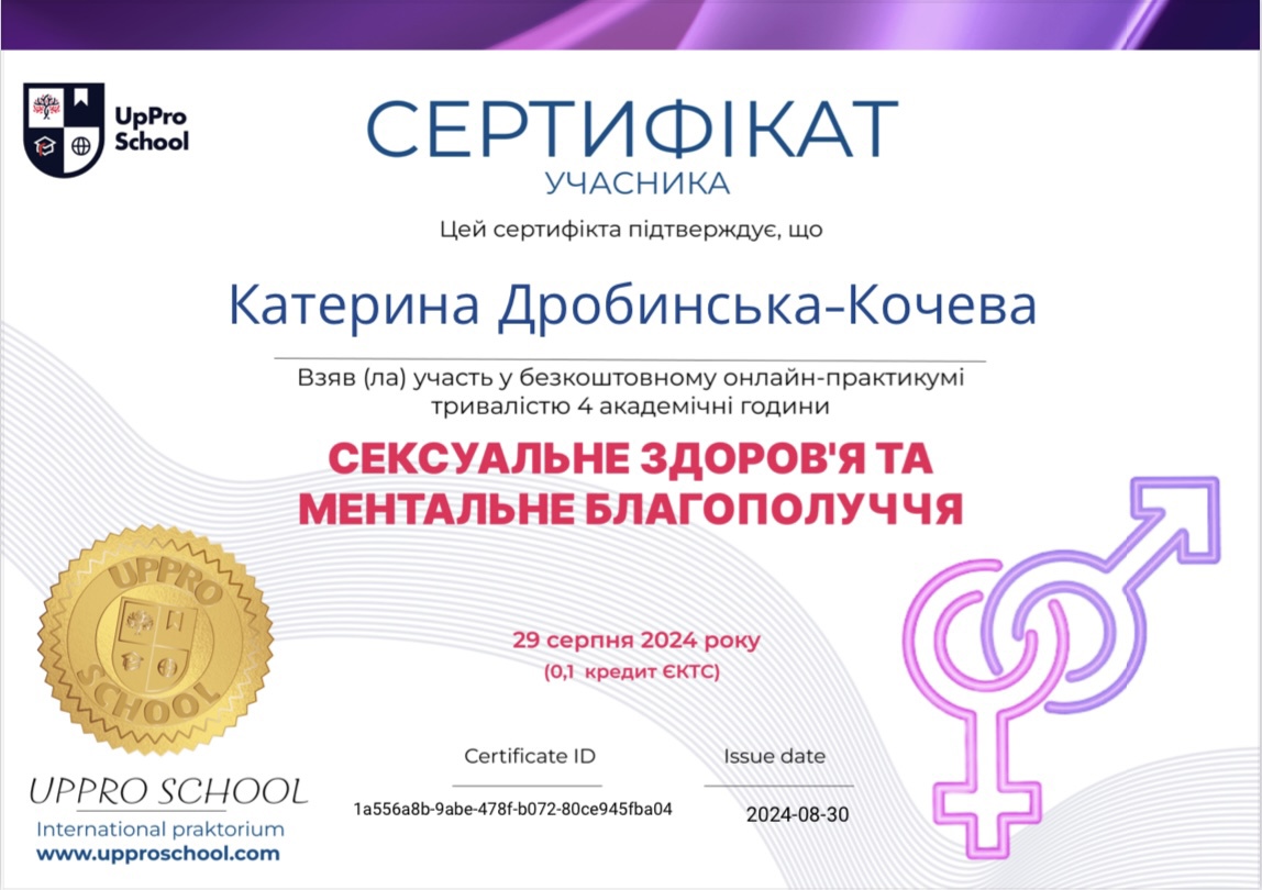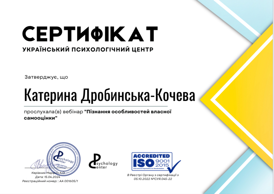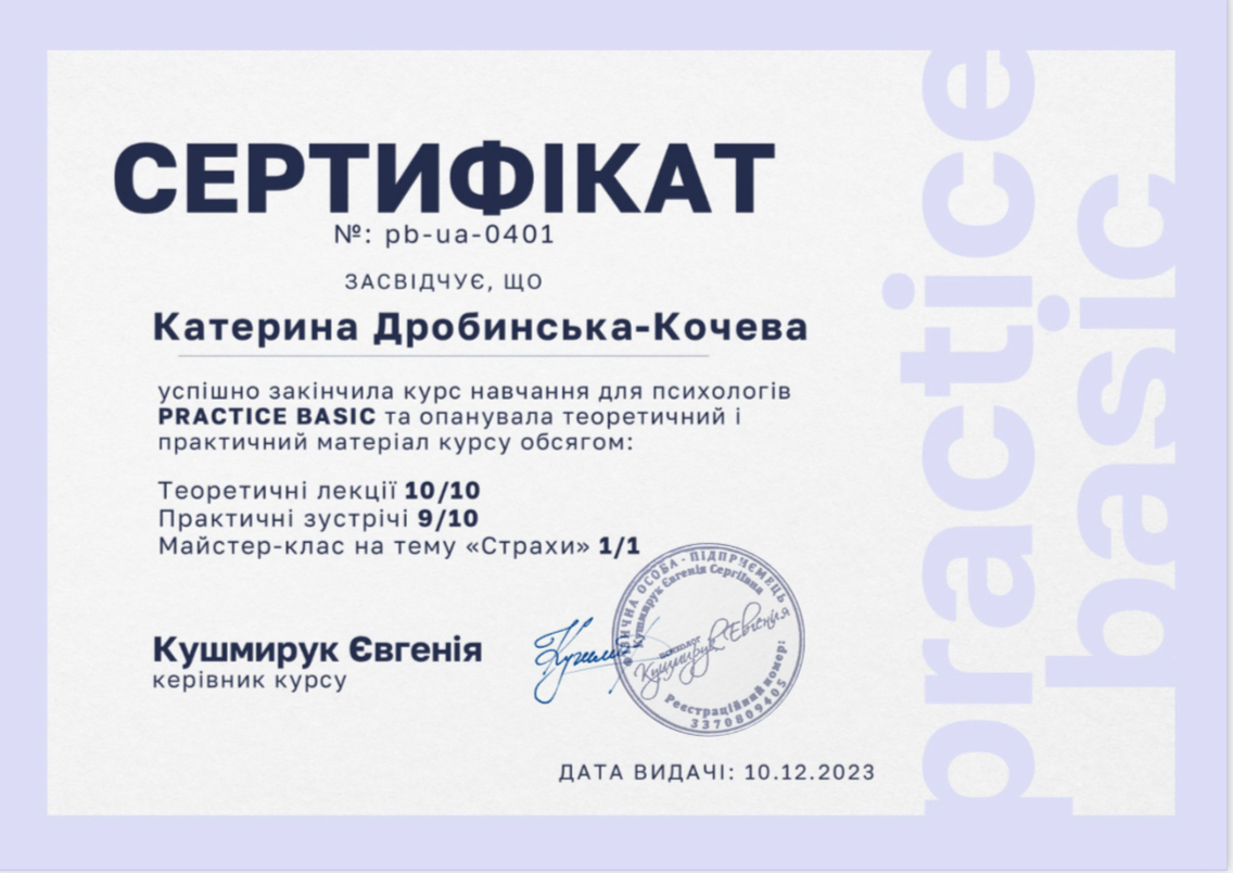 Усім привіт, мене звати Катерина і я магістр практичної психології.