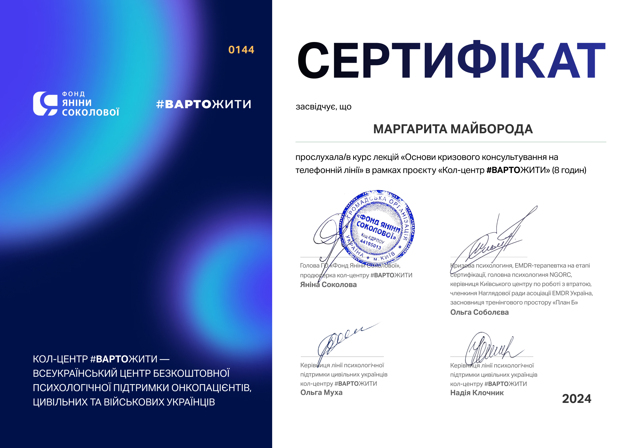 -Всеукраїнський Центр безкоштовної психологічної підтримки онкопацієнтів, цивільних та військових українців. Кол-центр #Варто жити. Українська психоонкологічна асоціація.