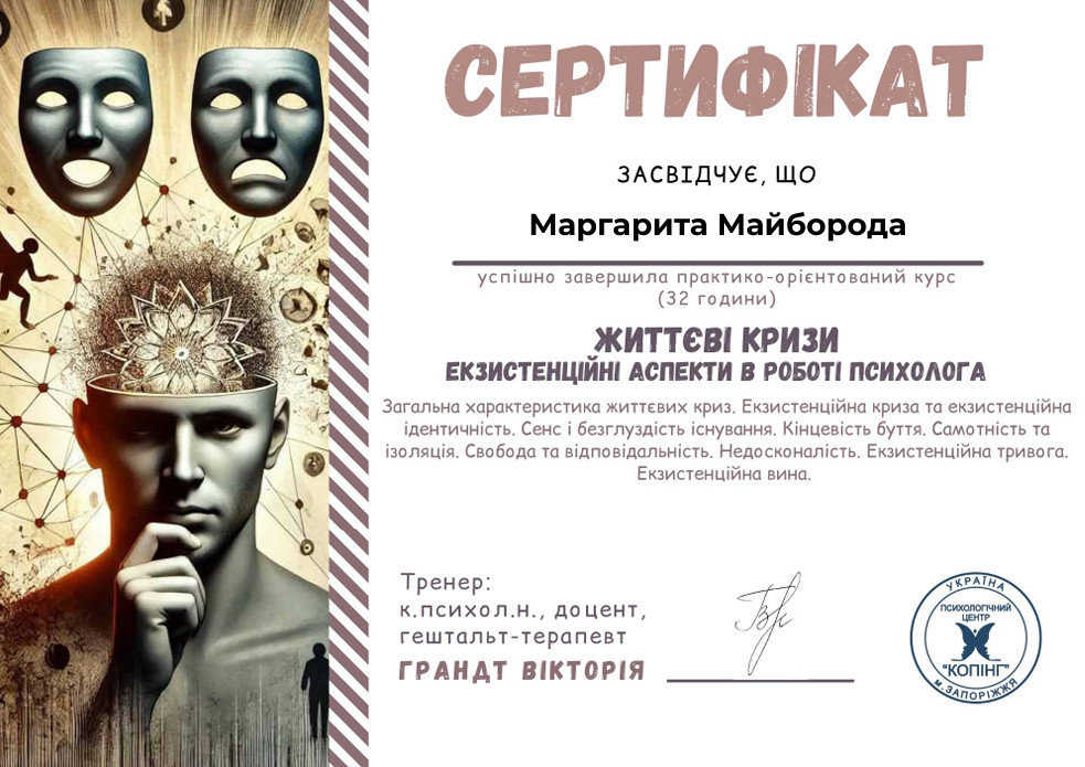 Практико-орієнтований курс «Життєві кризи. Екзистенційні аспекти в роботі психолога.