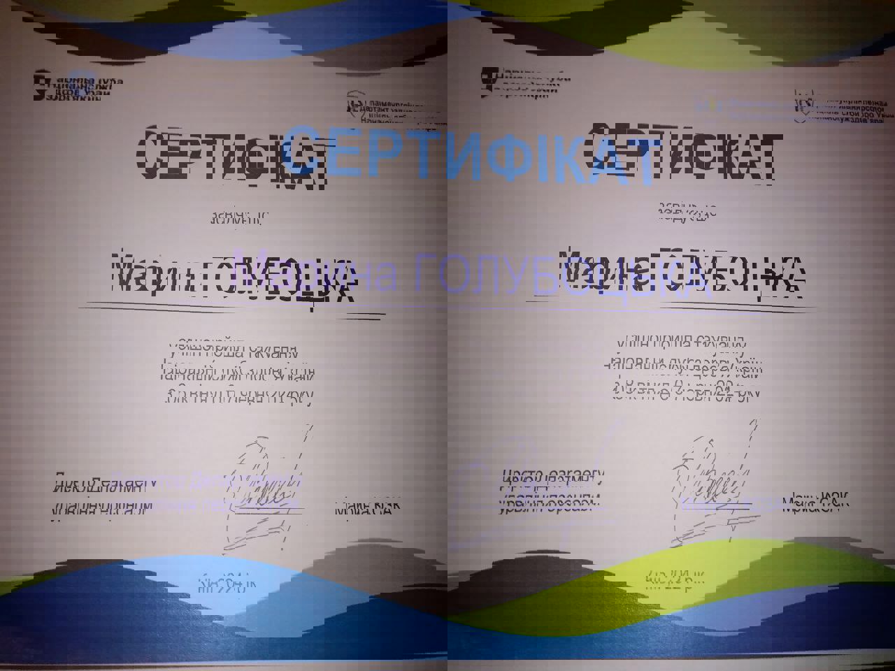 Гіпнотерапії, емоційно-образна терапія, курси з гендерної рівності,клінічна психологія, стажування при Академії МОЗ, Ведення поширених психічних розладів на первинному рівні медичної допомоги із використанням керівництва mhGAP ( рівень 1 та рівень 2), Тренінг з психологічної стійкості "Провідники змін".