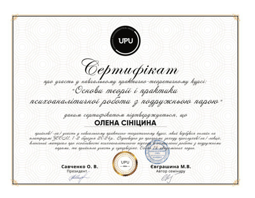Спеціалізація з клінічного психоаналізу «Психоаналітична терапія дітей та підлітків».