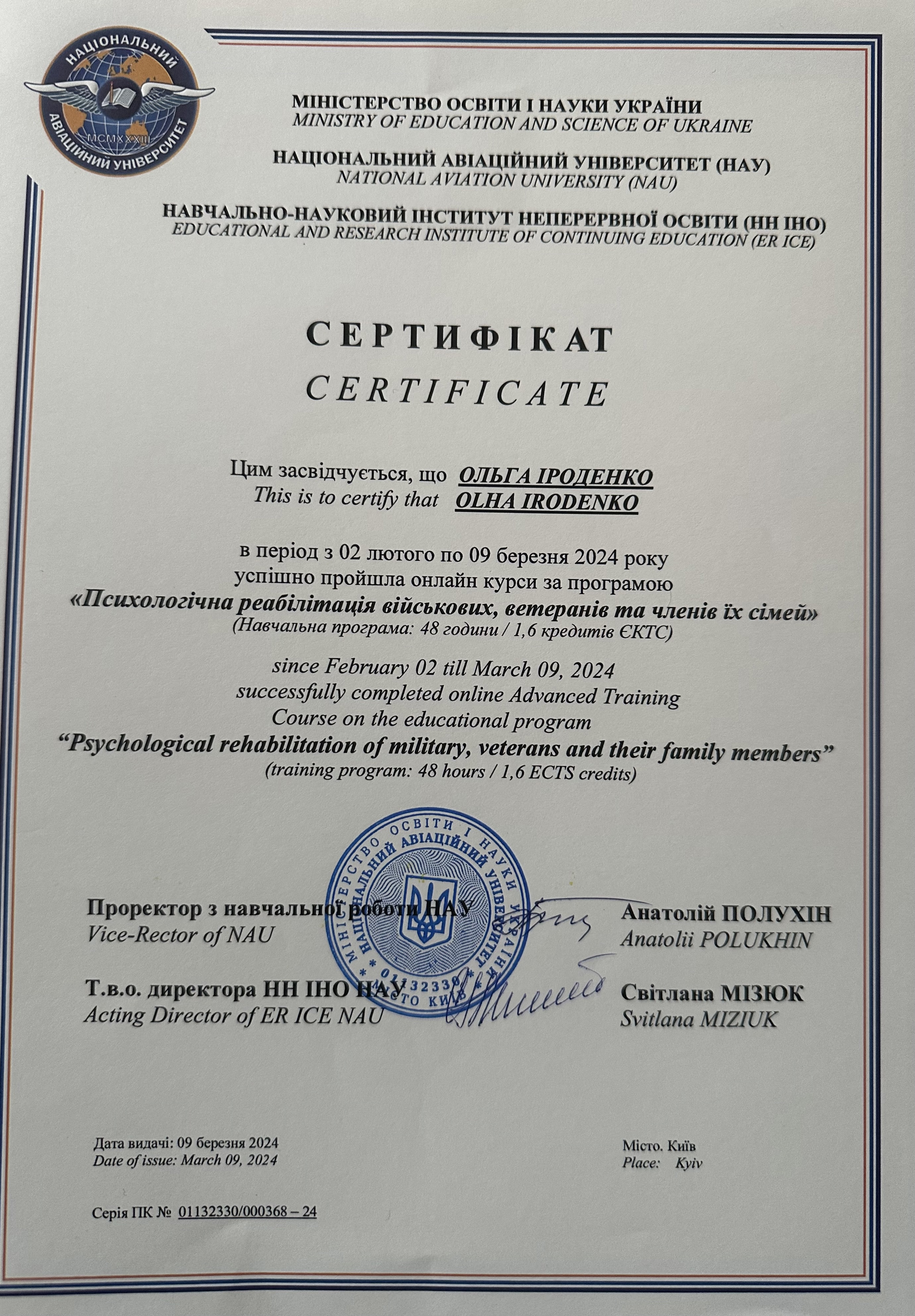 2023 Курси Олесі Борисової « Робота з учасниками бойових дій»