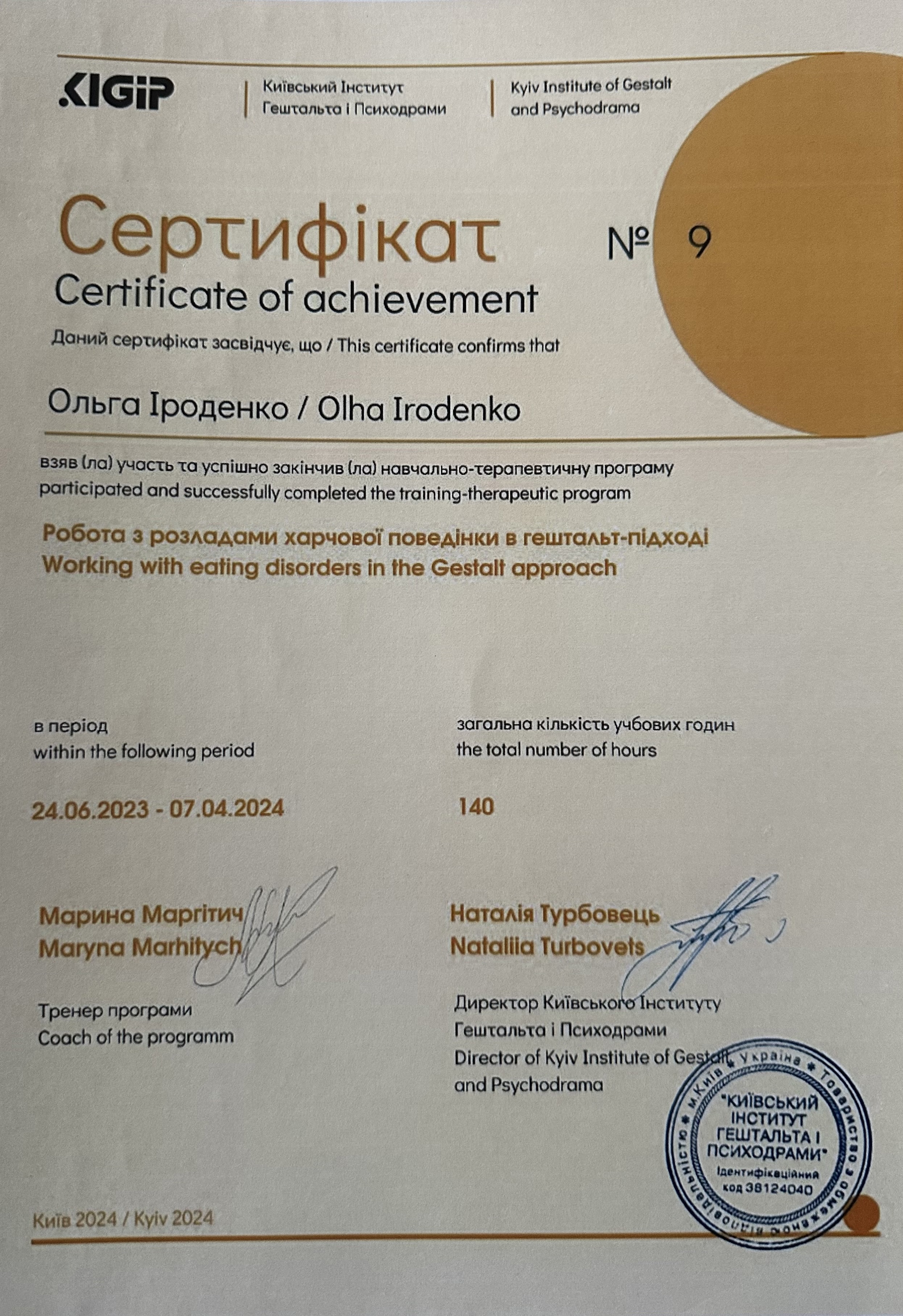 2023-2024 КІГІП « Робота з розладами харчової терапії в гештальт- підході»