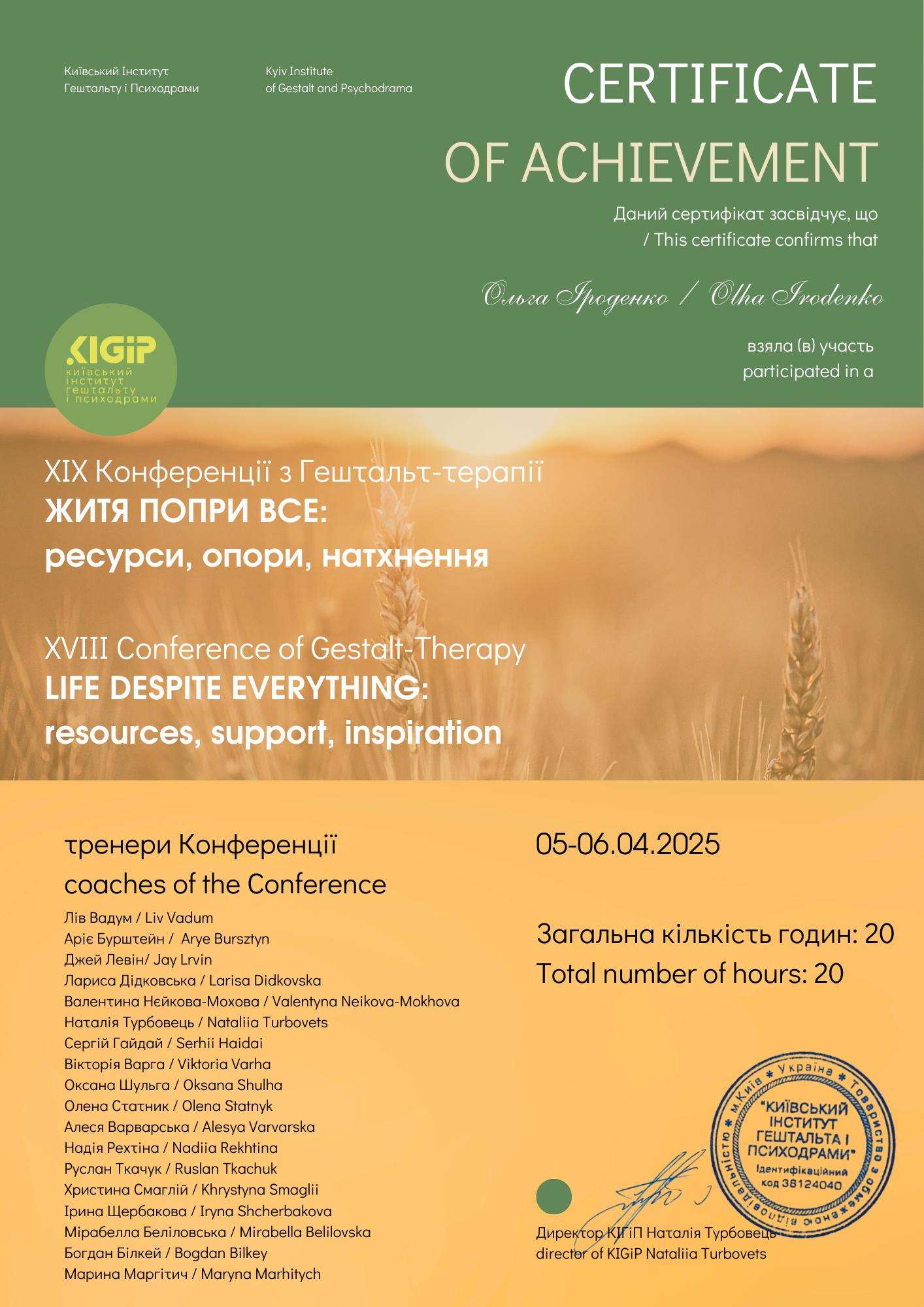 2024- по даний час КІГІП, Другий ступінь навчання на гешталт-терапія