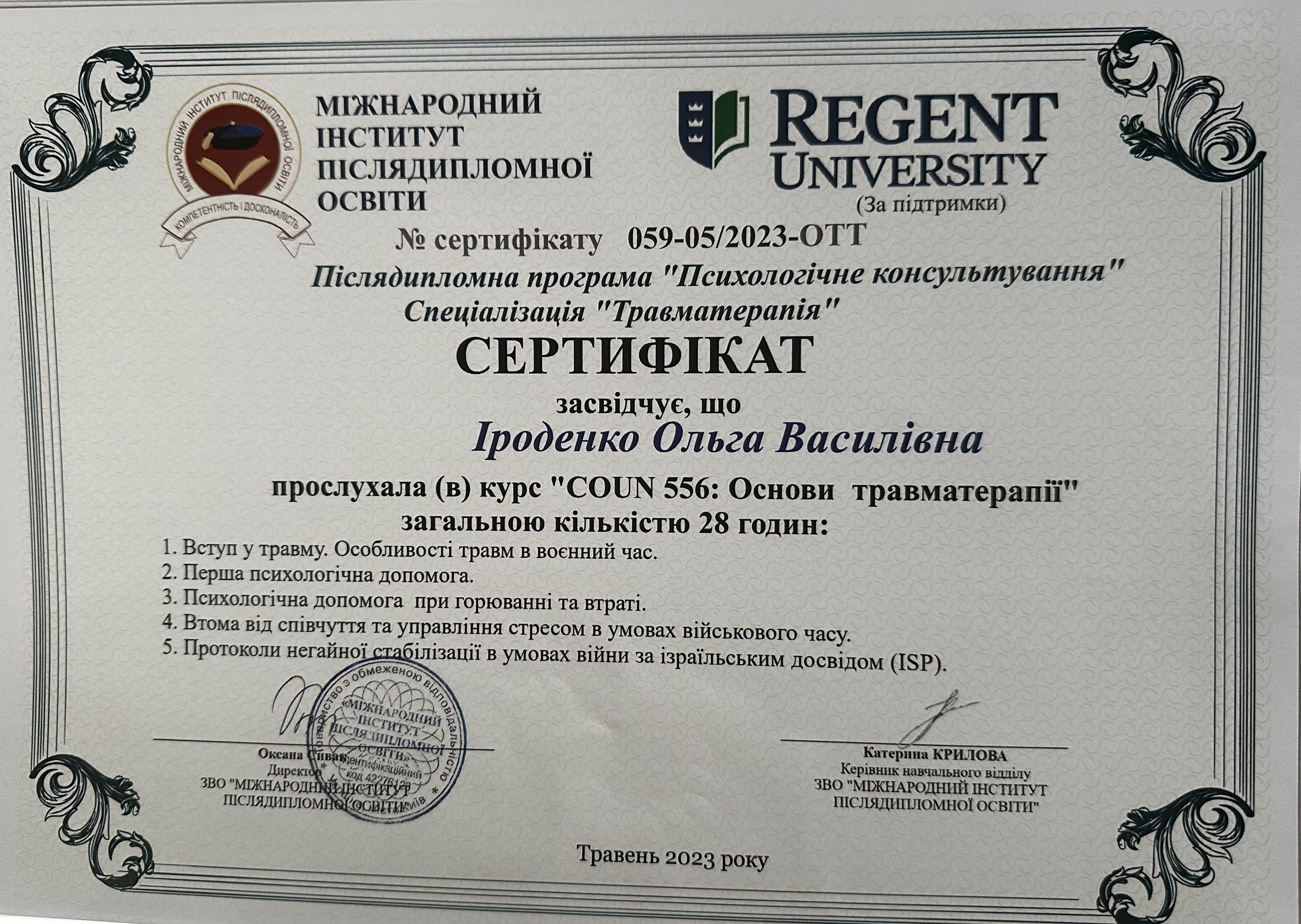 2025 Інститут вивчення психотерапії травми , « Техніки ТФ КПТ при роботі з травмою»