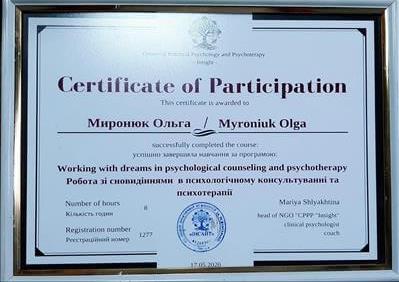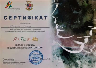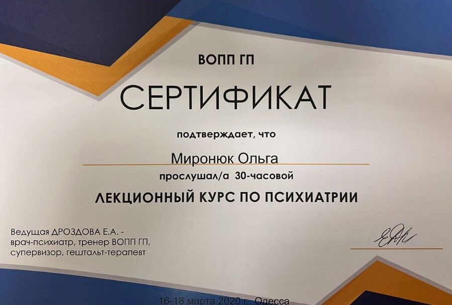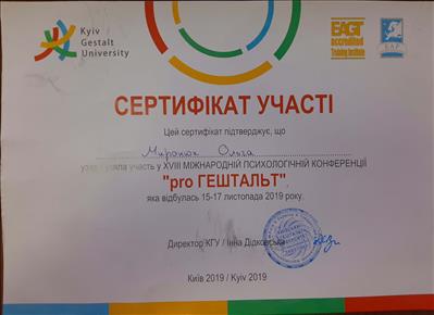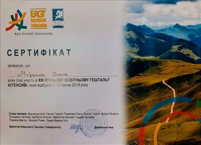 Київський Гештальт Університет, сертифікований гештальт-терапевт – 2022 р.