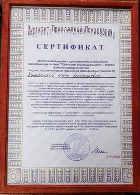 Інститут прикладної психології, психодіагностика особистості – 1999 р.