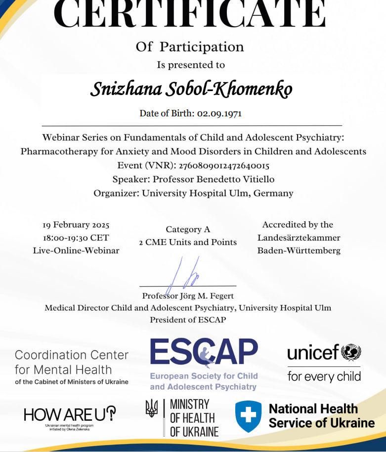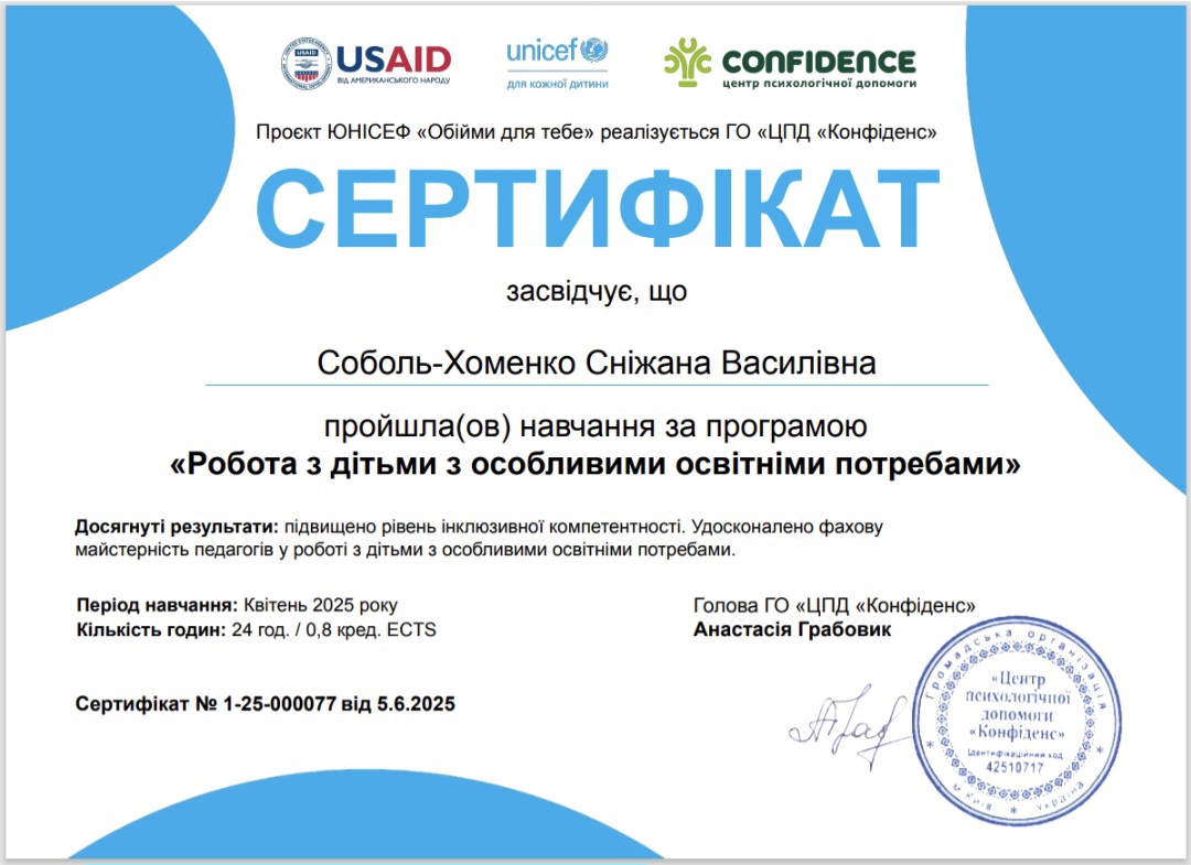 Сертифікати: