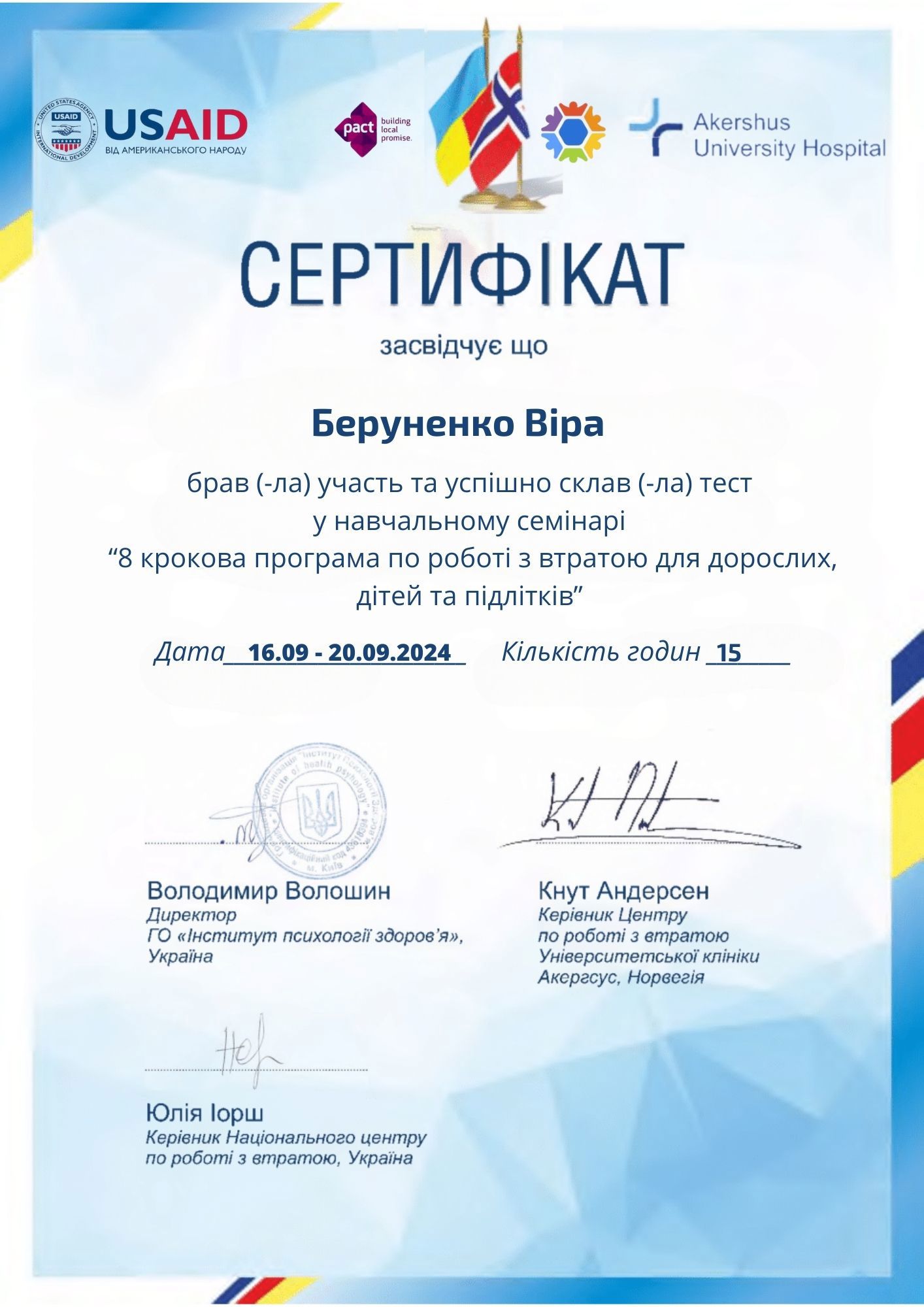 Сертифікати: