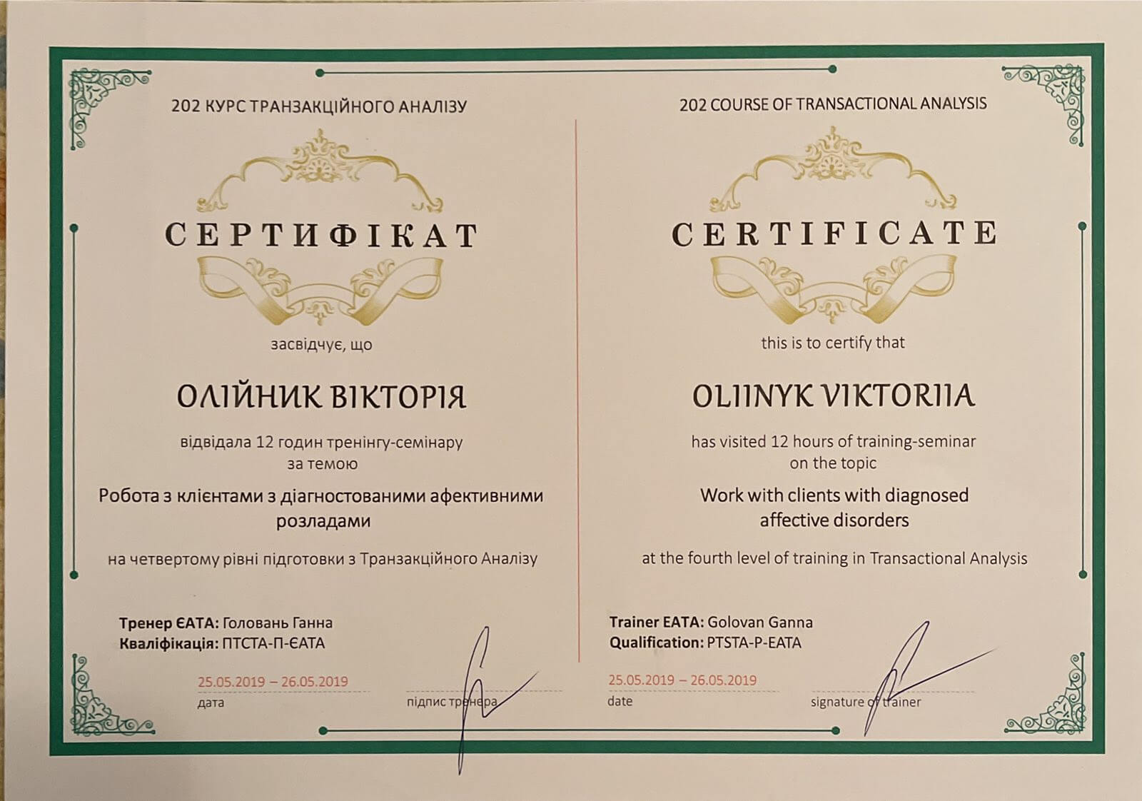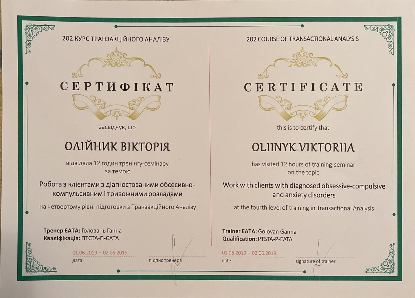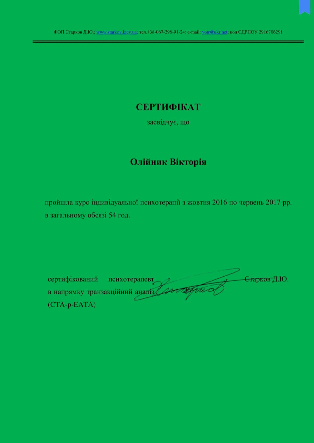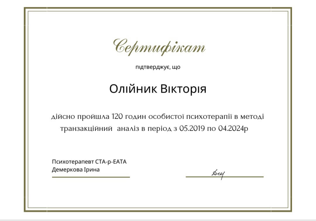 7. Сертифікат про проходження особистої психотерапії 2019-2024рр.