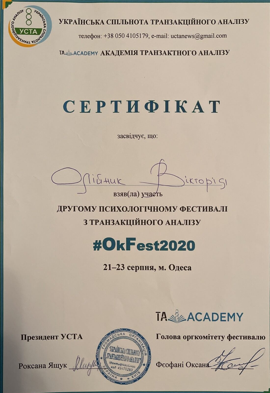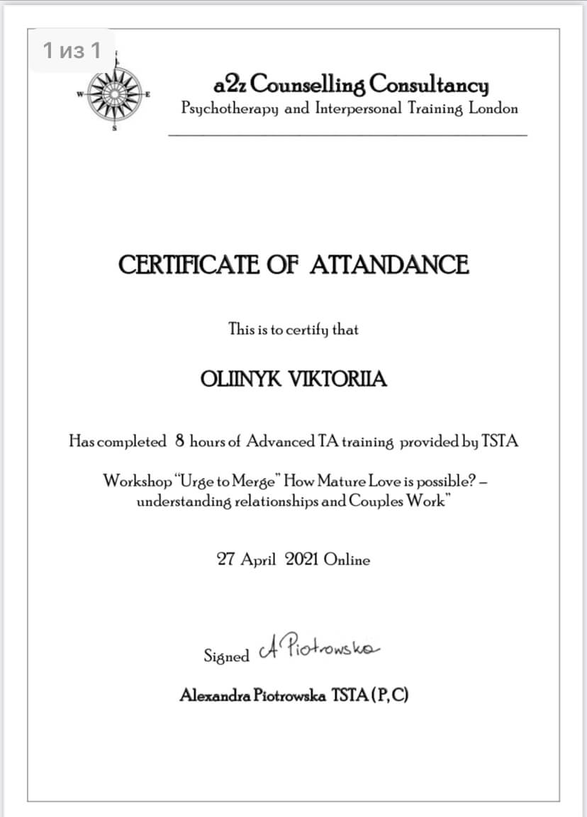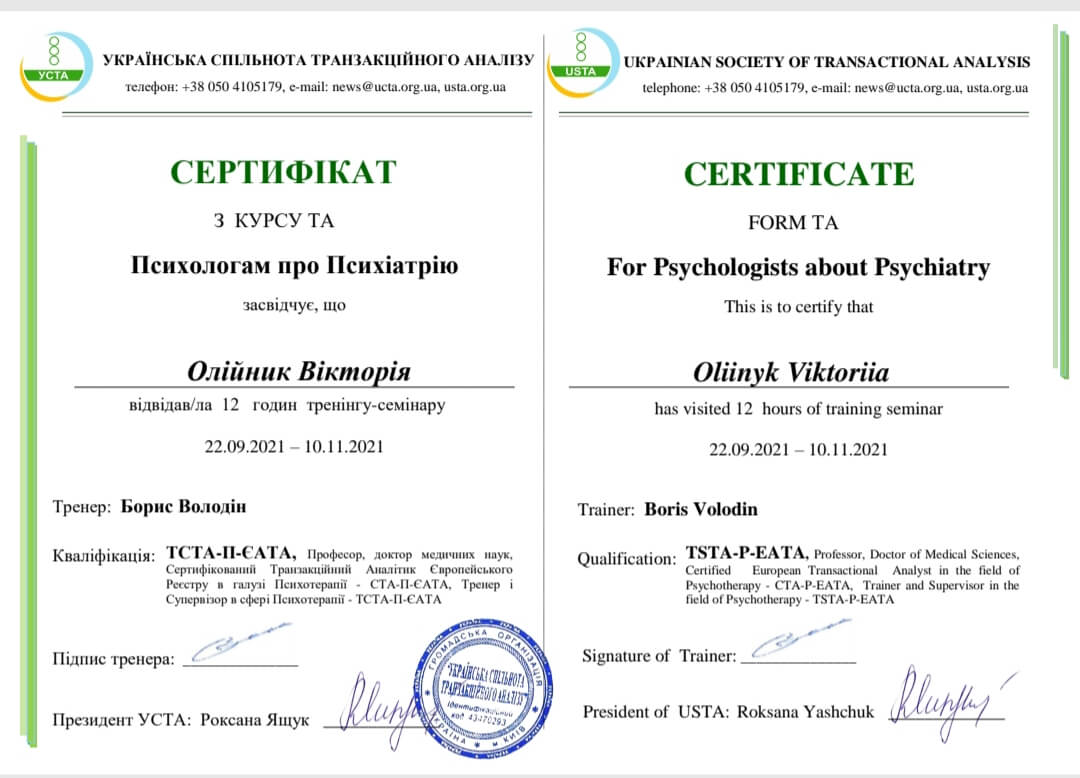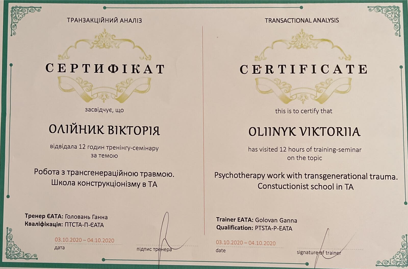 7. Сертифікат про проходження особистої психотерапії 2019-2024рр.