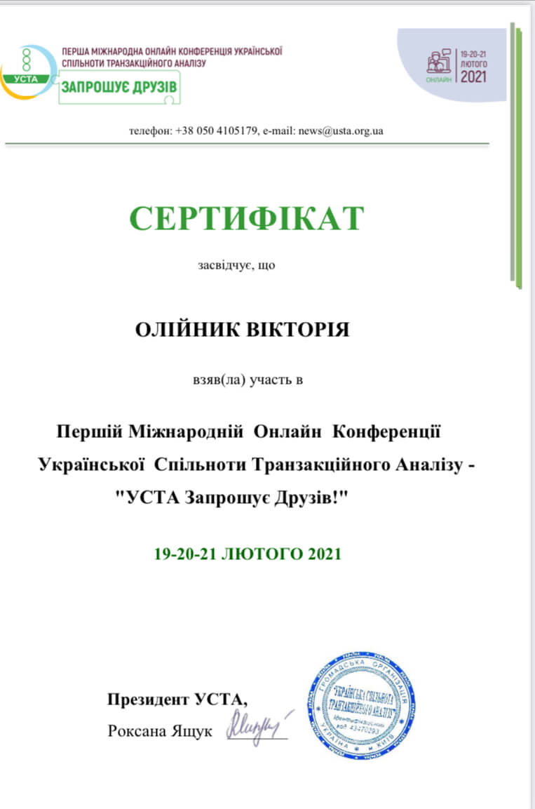 2. 4 річний курс поглибленого навчання транзакційного аналізу в психотерапії, 2019р.