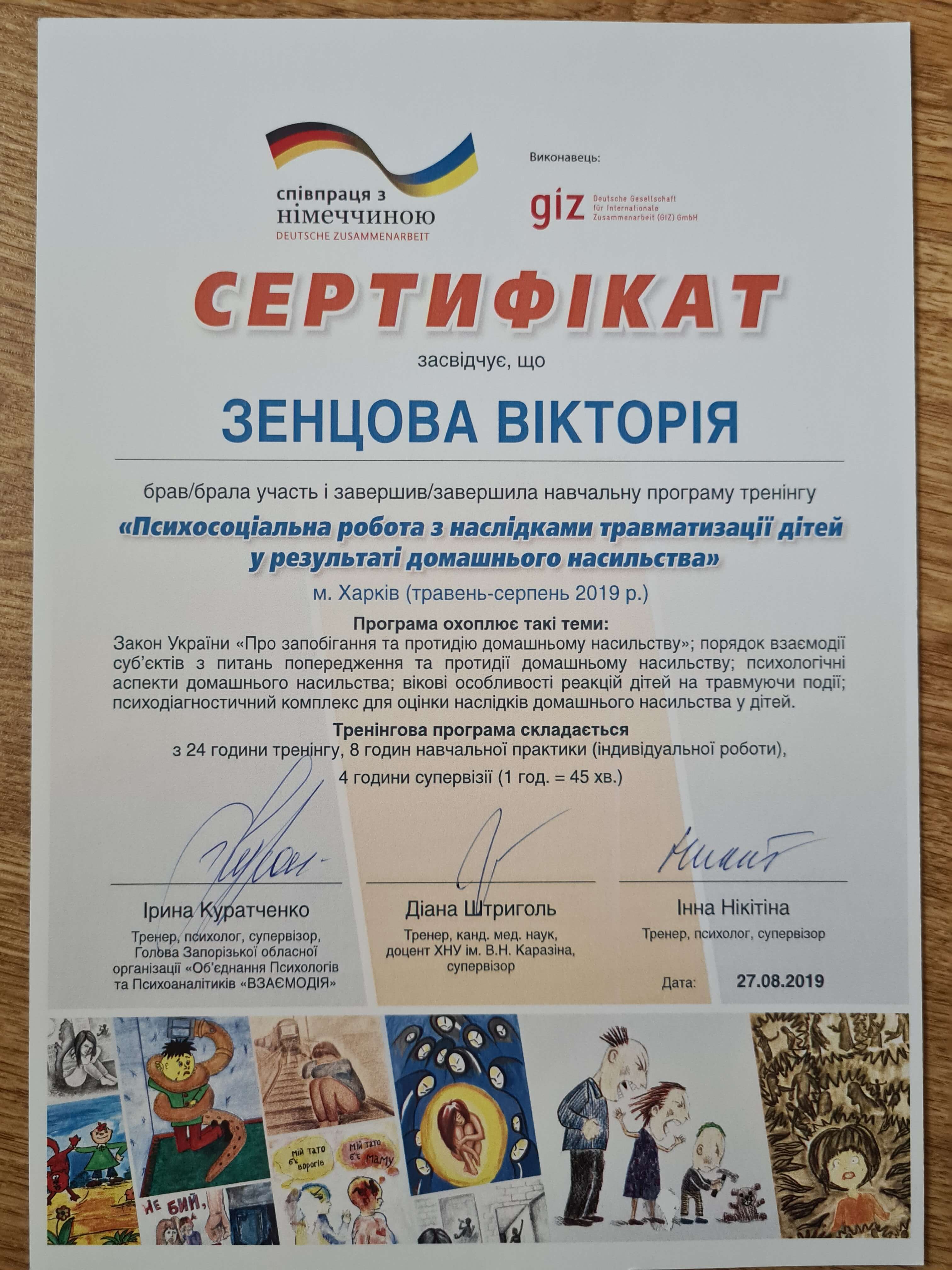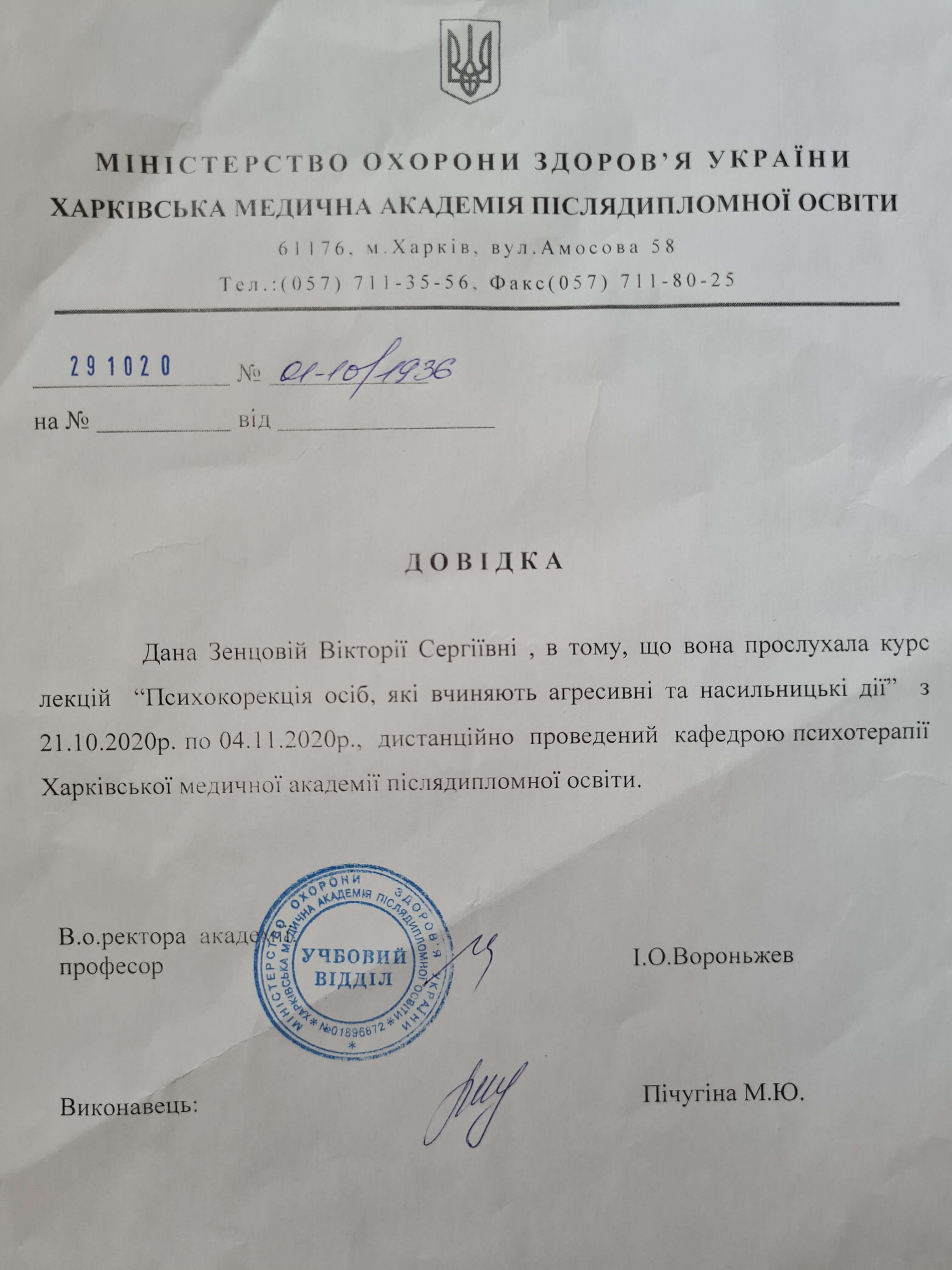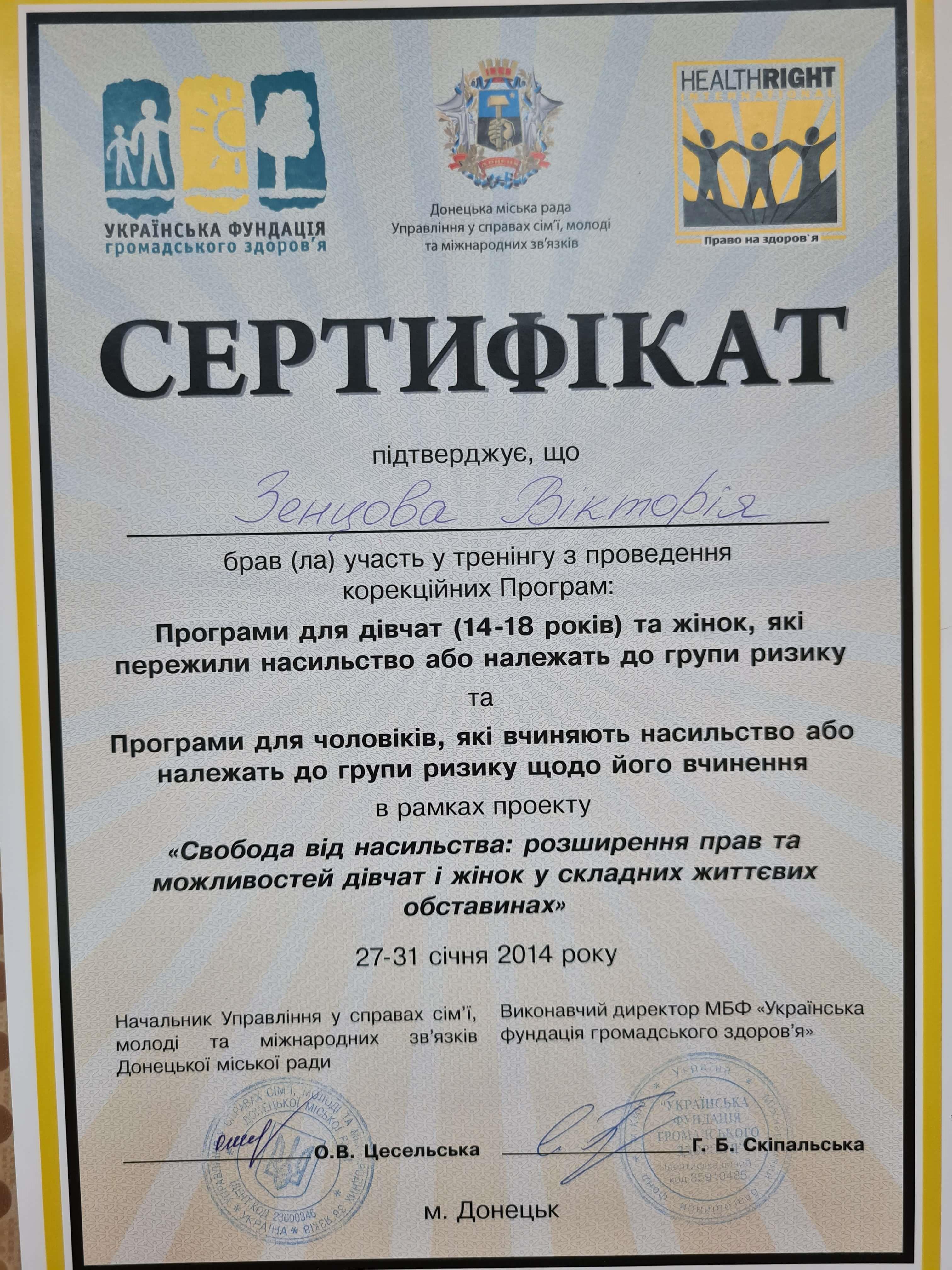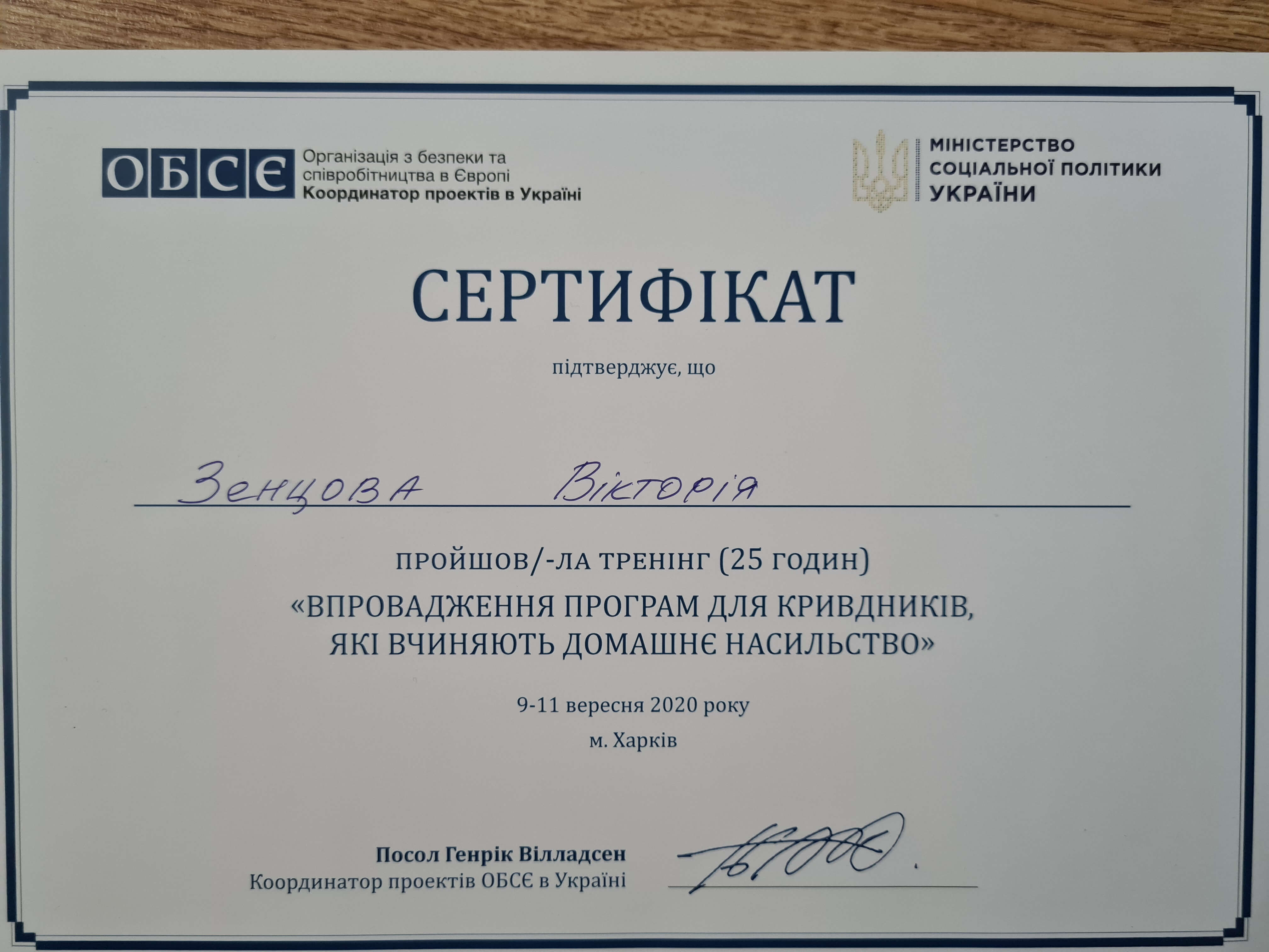 2. Сертифікат "запровадження корекційної програми для людей, які здійснюють домашнє насильство"