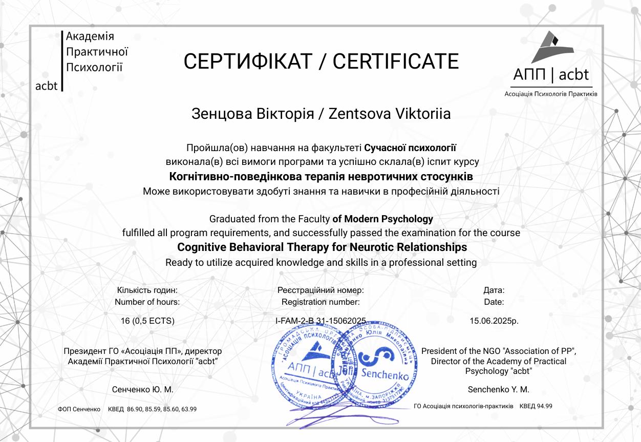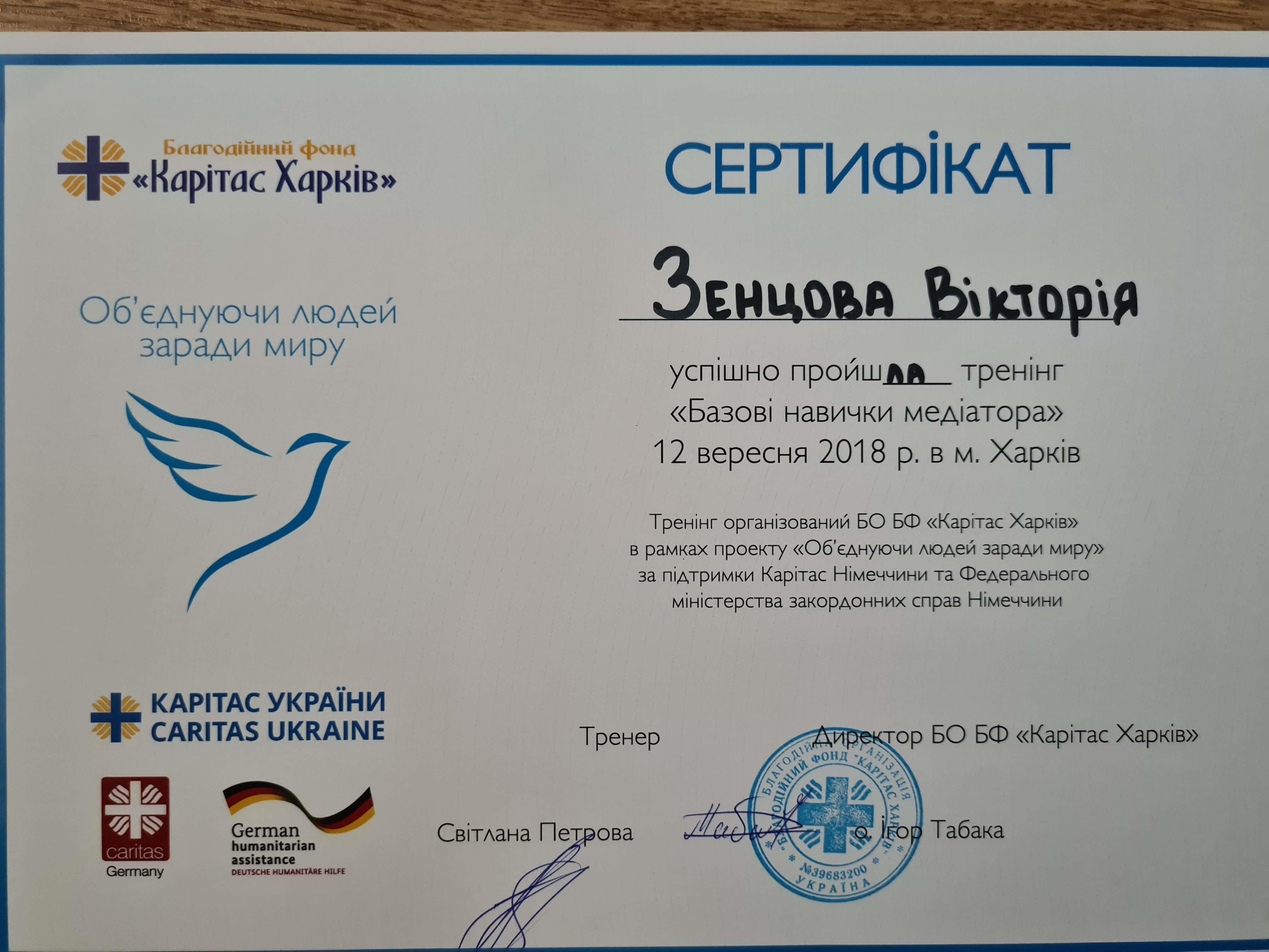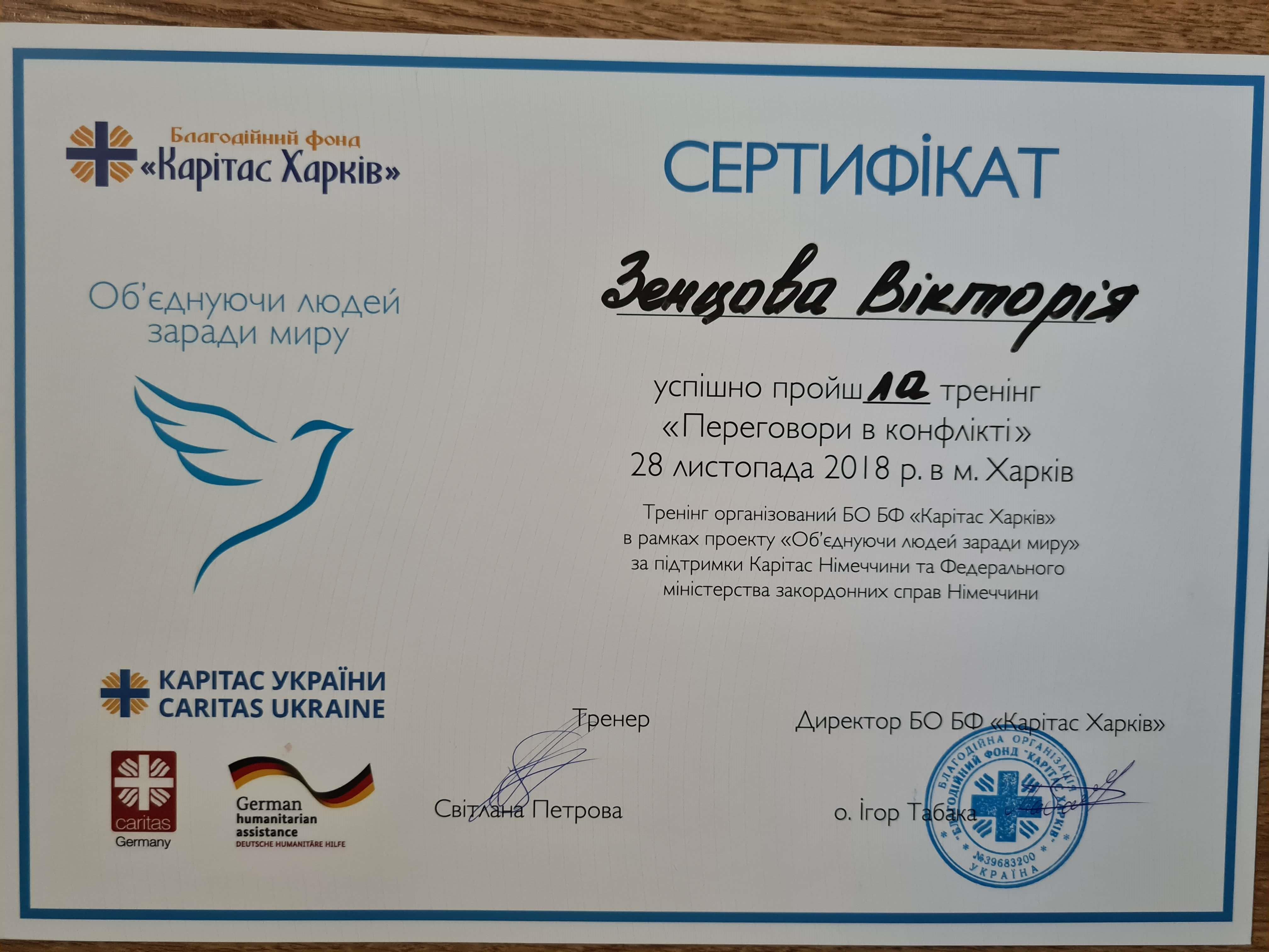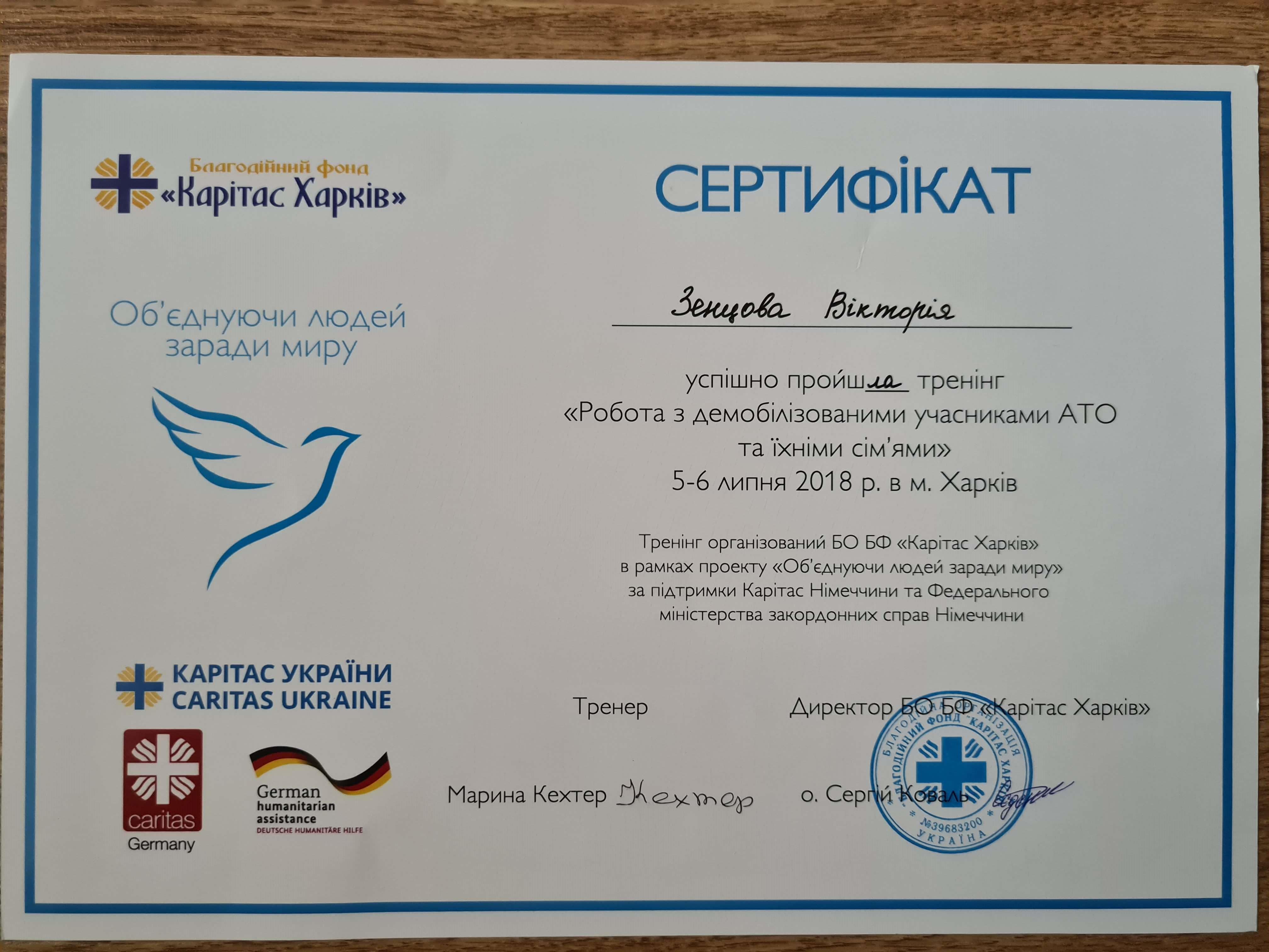 2. Сертифікат "запровадження корекційної програми для людей, які здійснюють домашнє насильство"