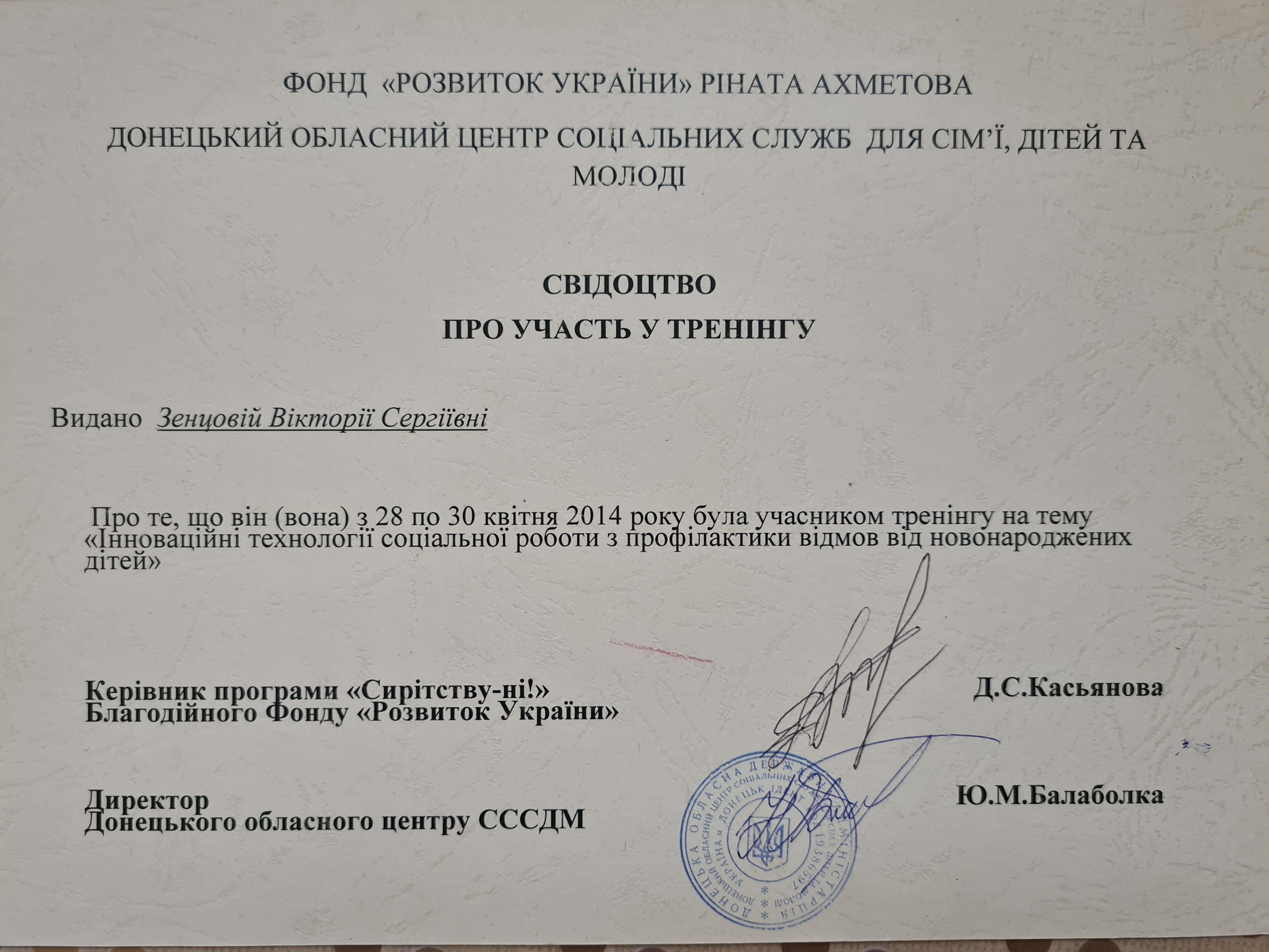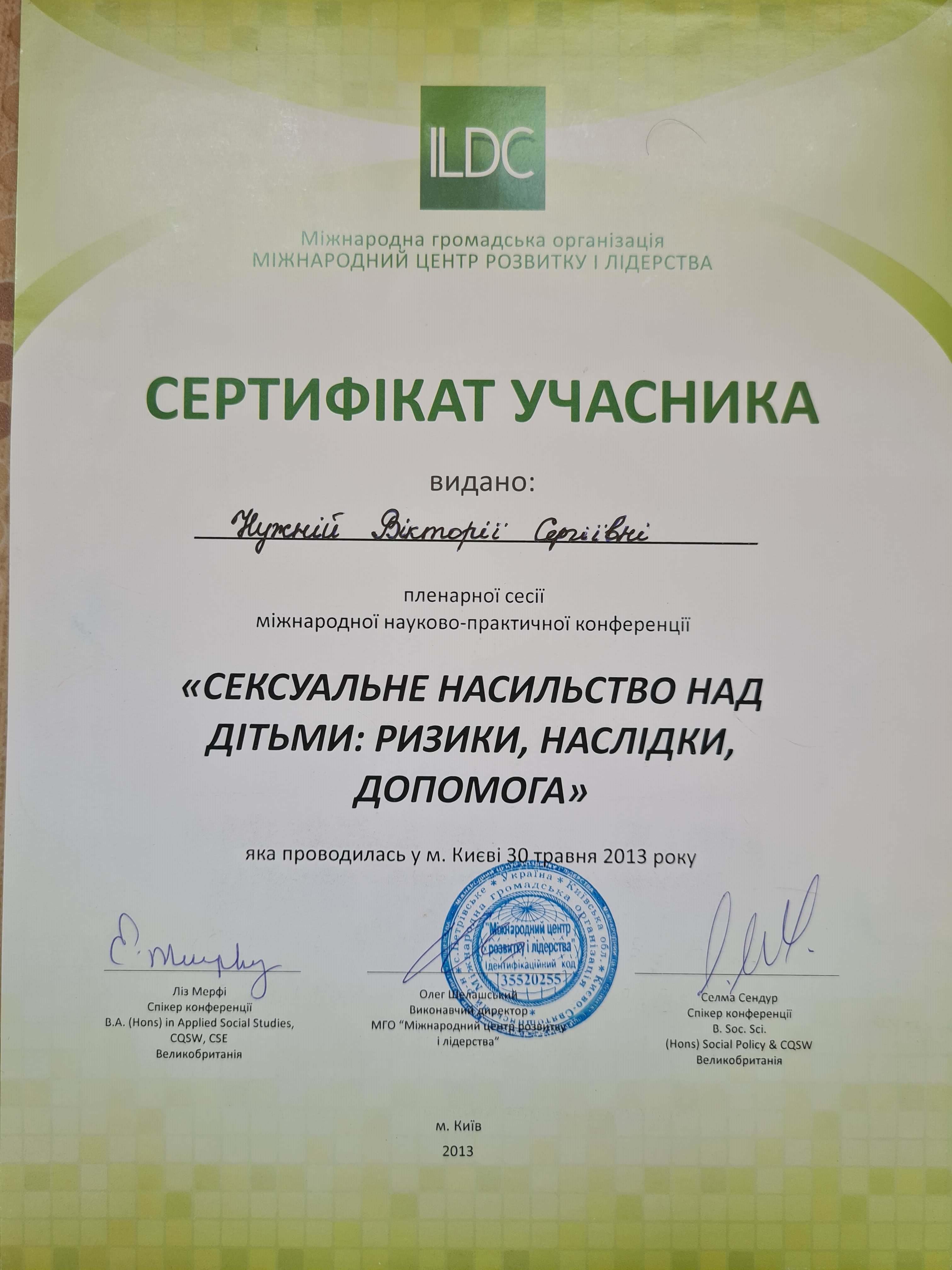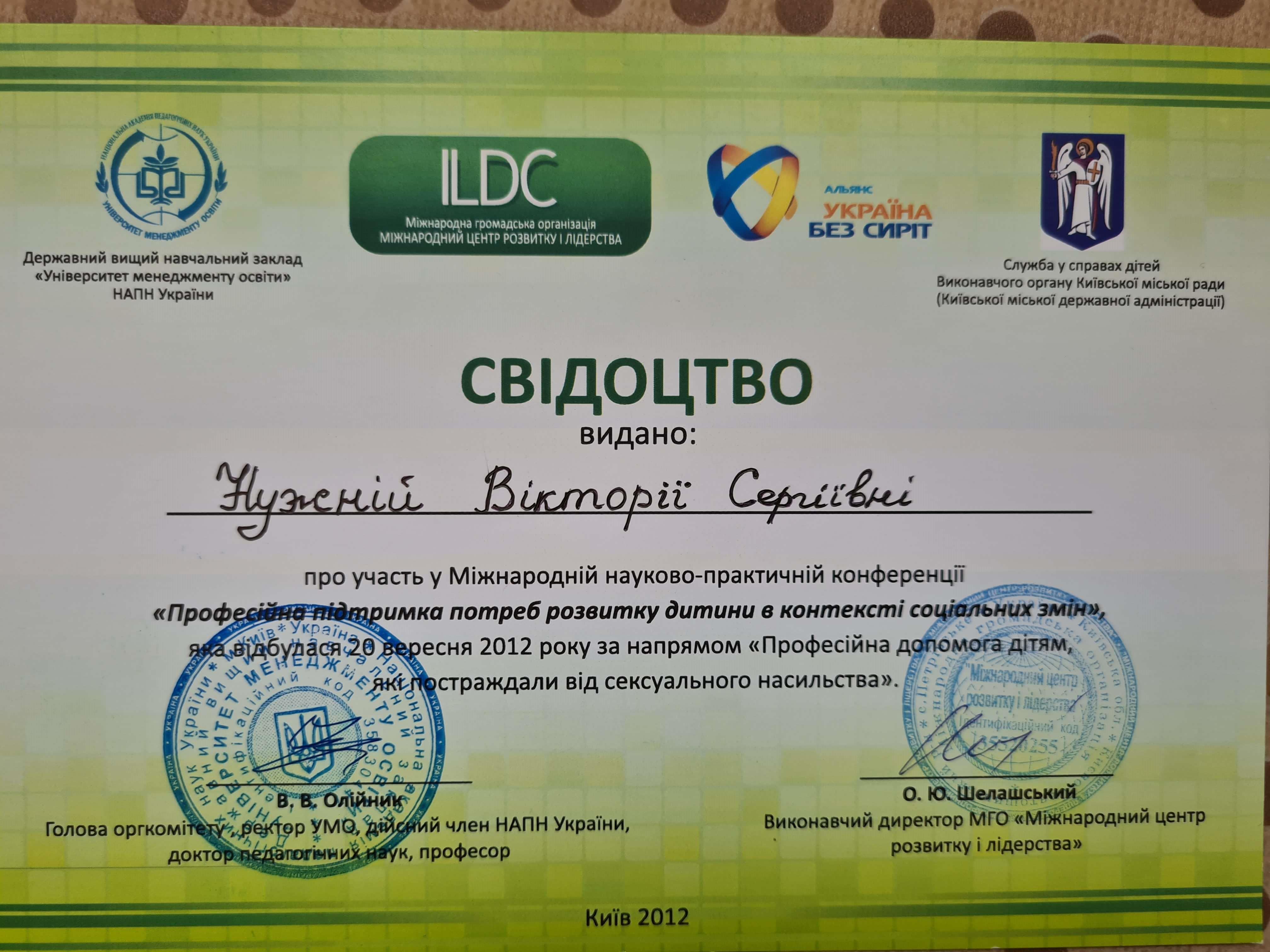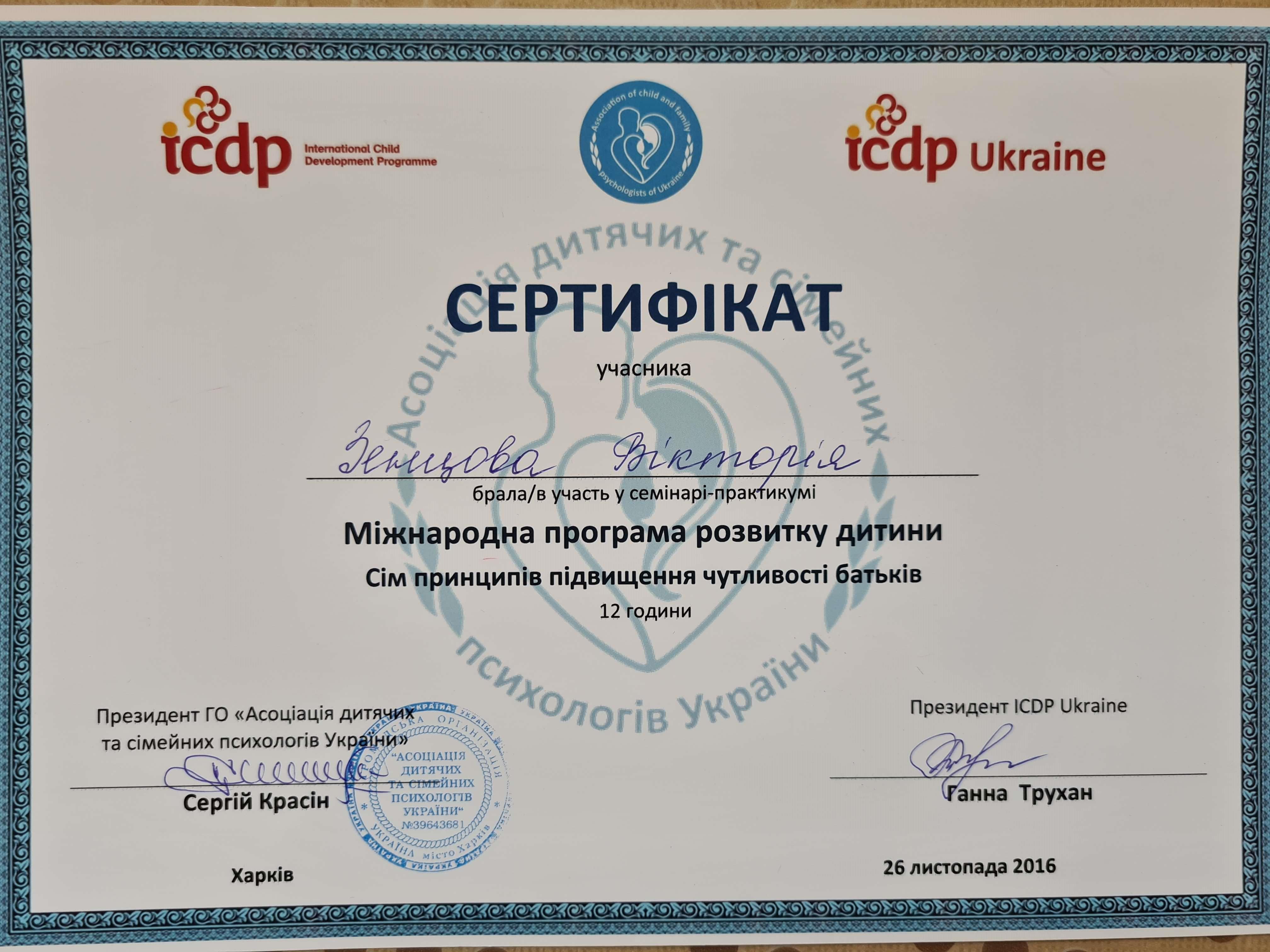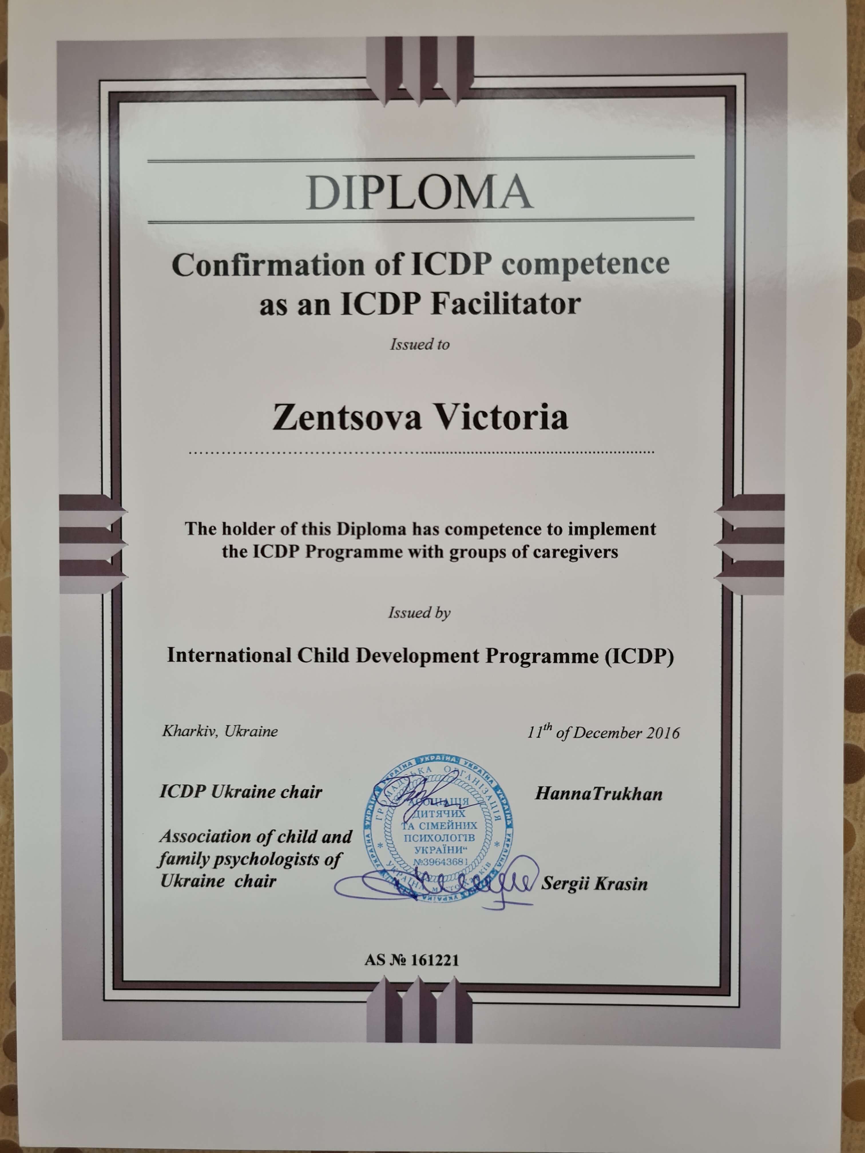 11. Сертифікат фасилітатора "Міжнародна програма розвитку дитини ICDP"