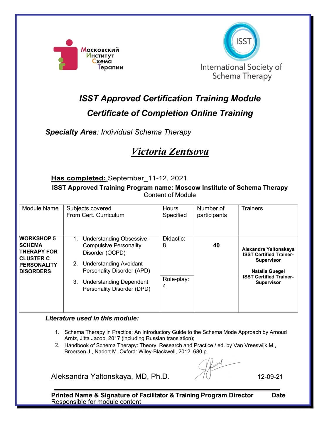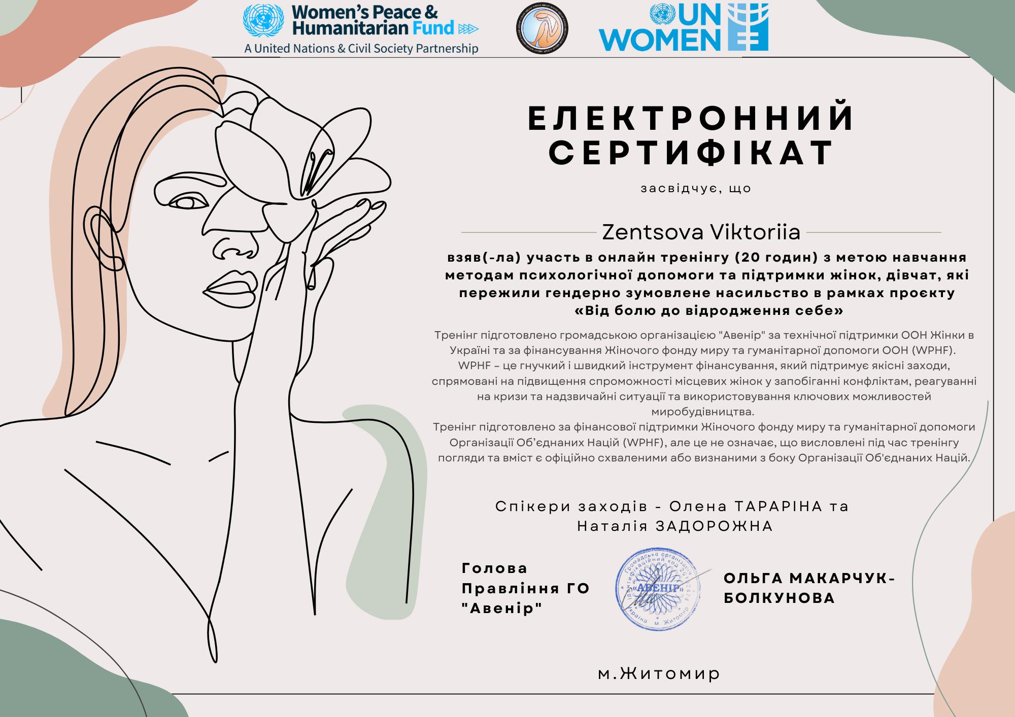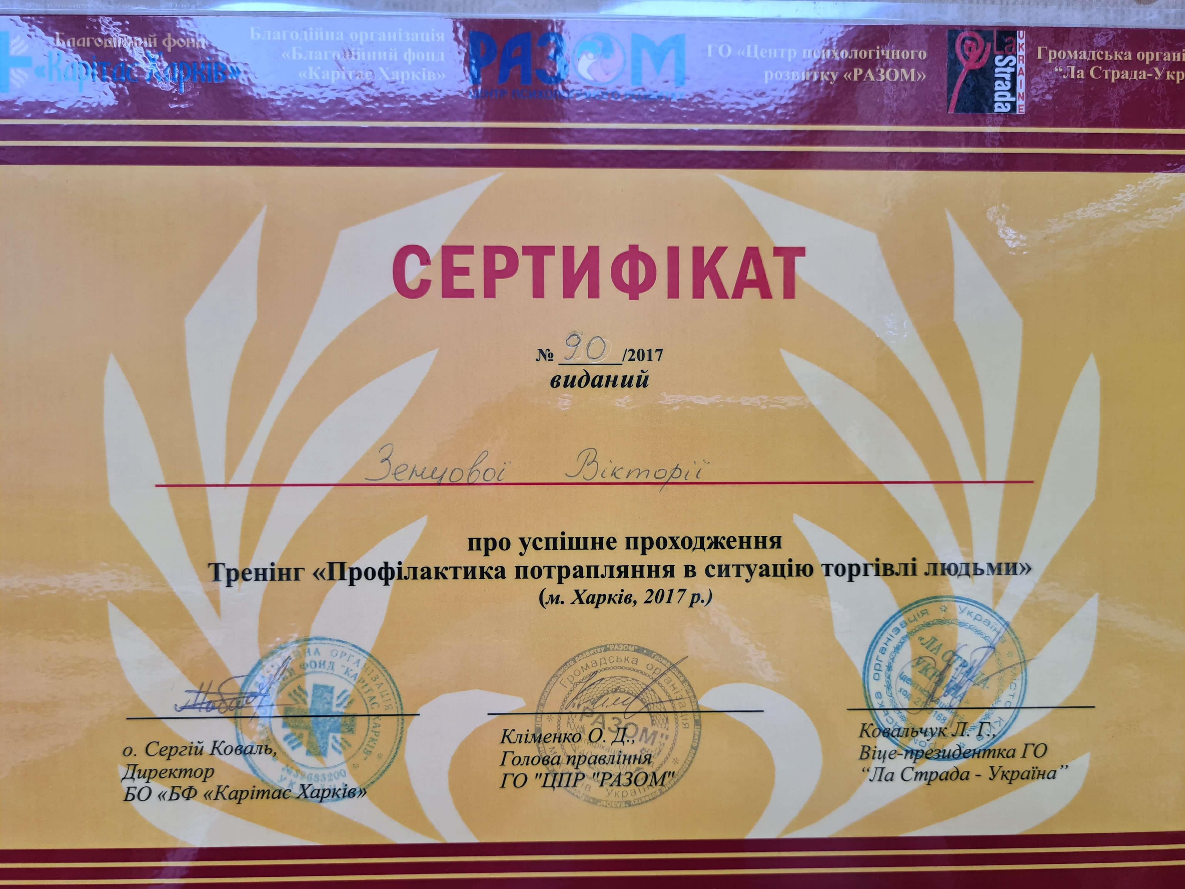 16. Сертифікат провідного корекційних програм для "дівчат і жінок, які пережили насильство" та для "чоловіків, які чинять насильство або перебувають у групі ризику"