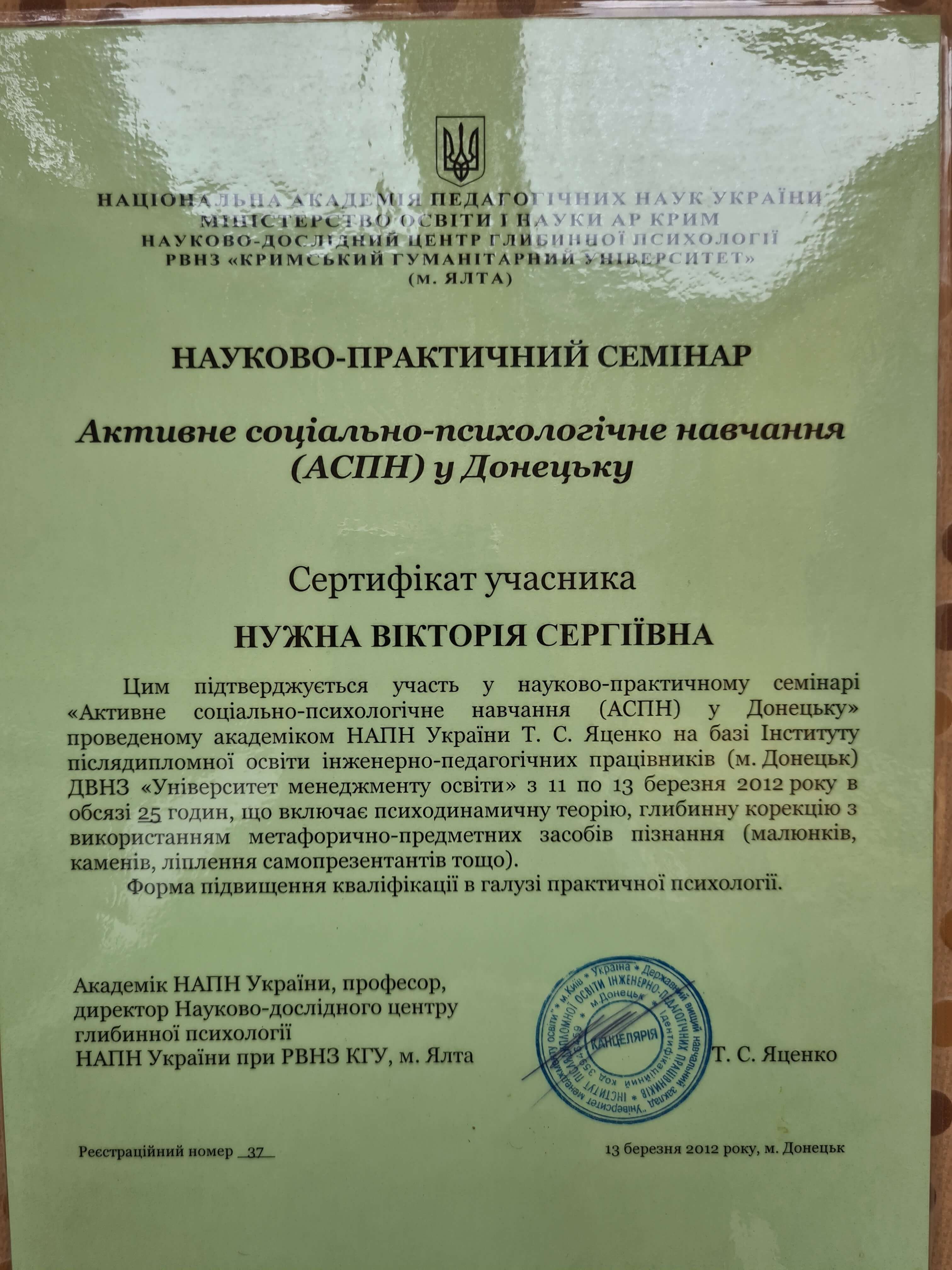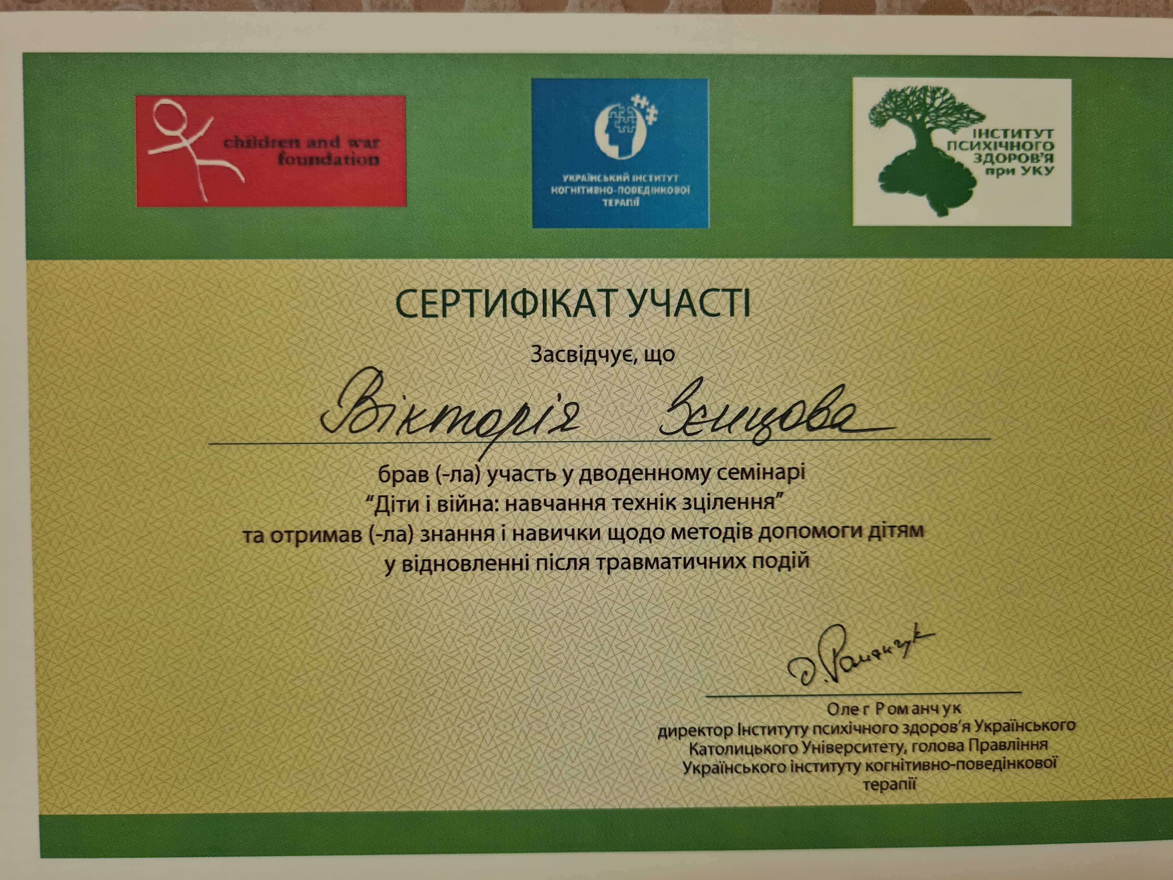 12. Підвищення кваліфікації "Вступ до методу травма-педагогіки та дитячої травматерапії"