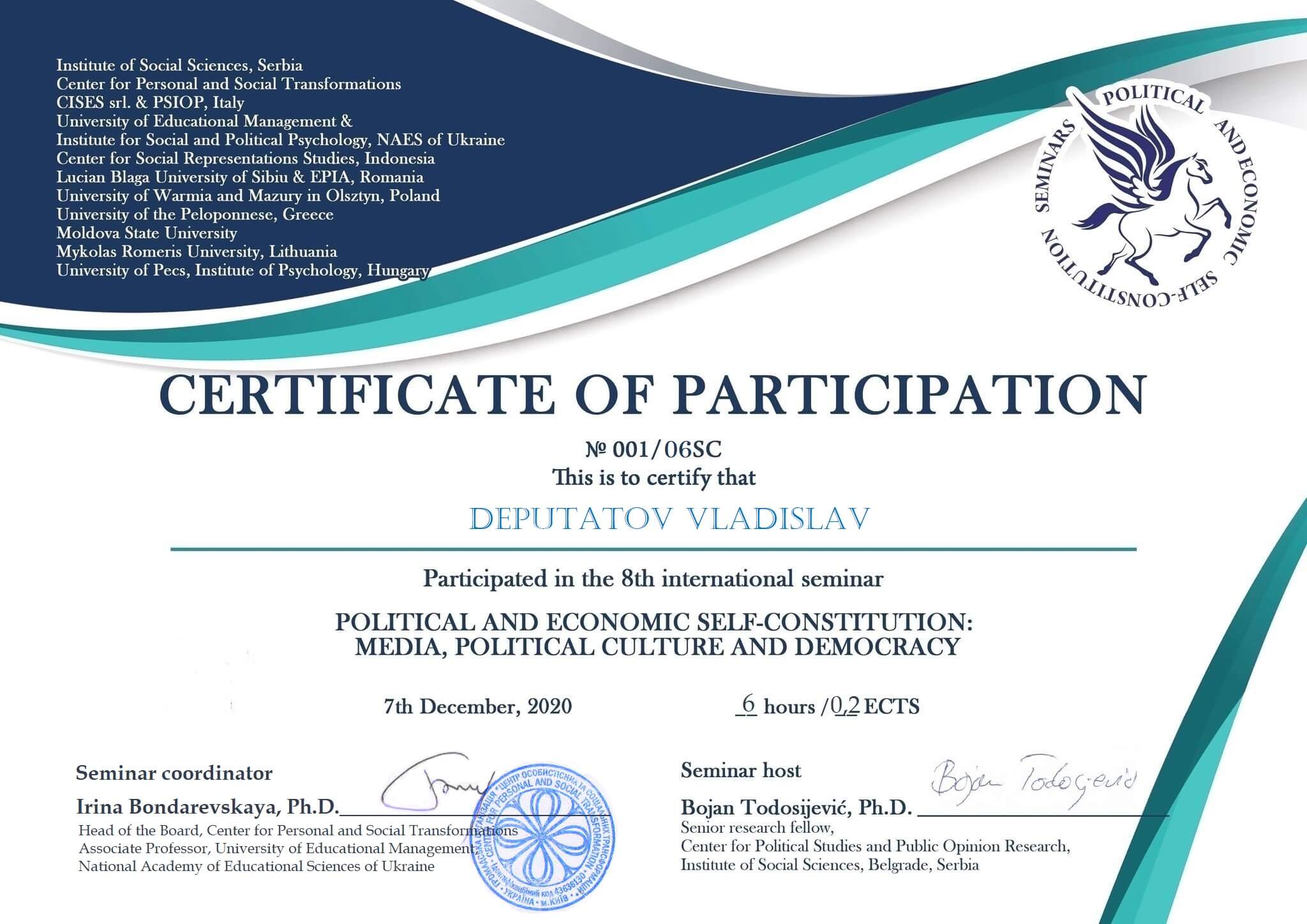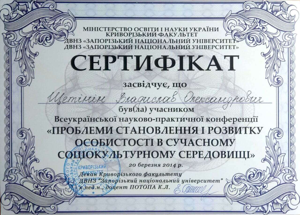 Сертифікати: