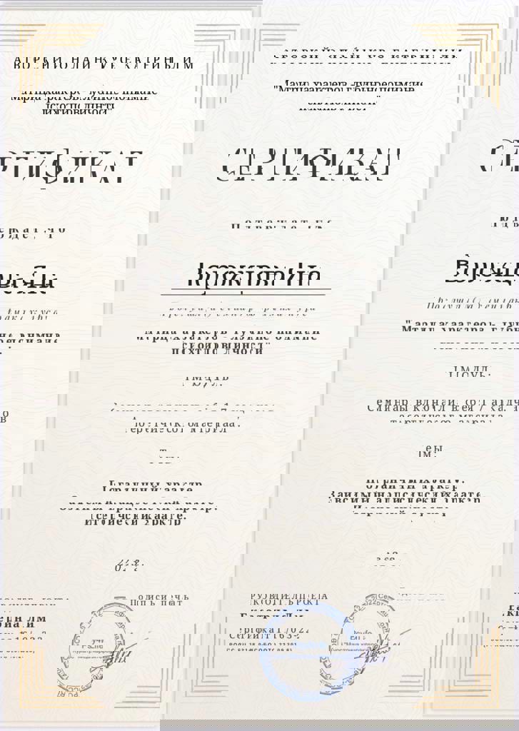 Сертифікати:
