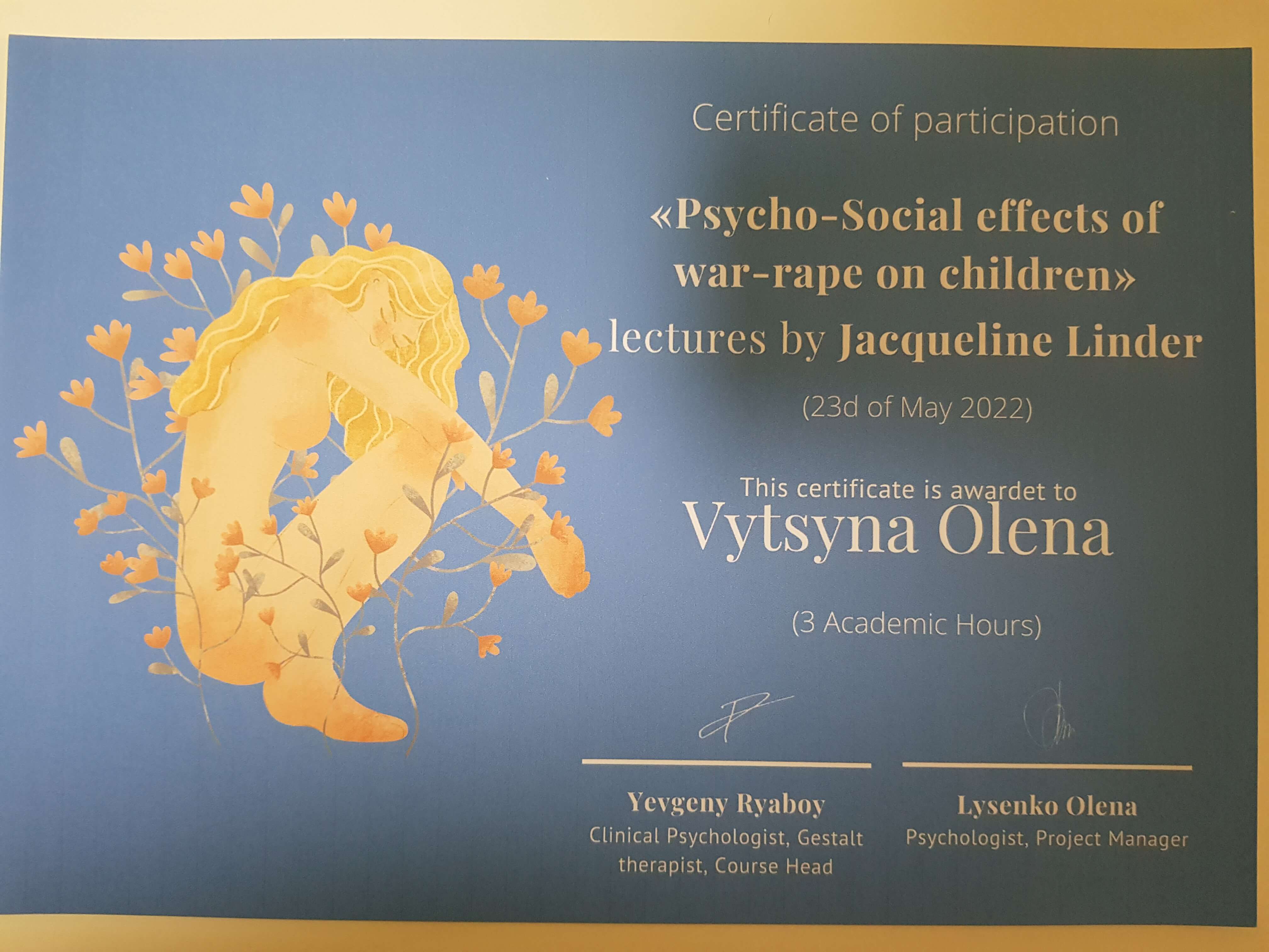 1. «Особенности сопровождения лиц, пострадавших от сексуального насилия во время войны и вторичный травматический стресс», 26.05.23 г.