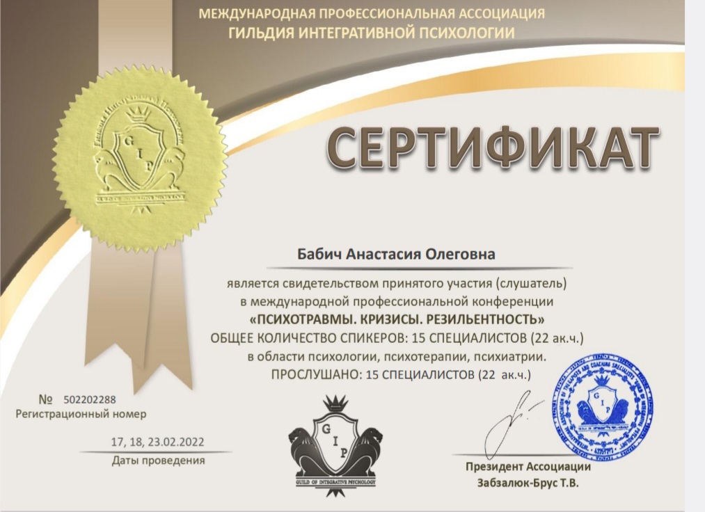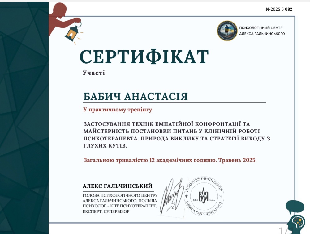 Завершила базовый курс по положительной психотерапии по Пезешкиану (200 часов) и не только.