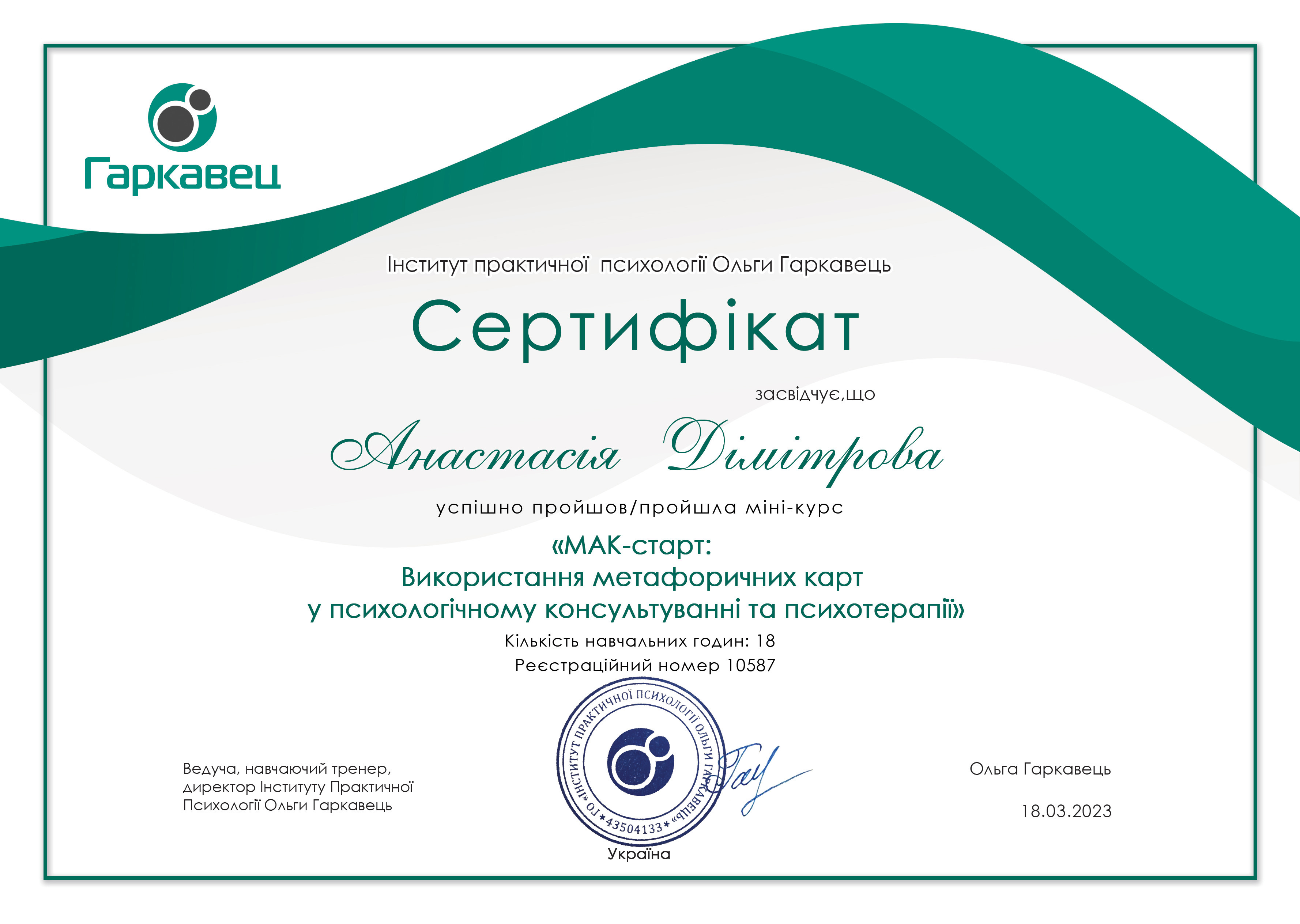 •Курс «МАК: Использование метафорических карт в психологическом консультировании и психотерапии»