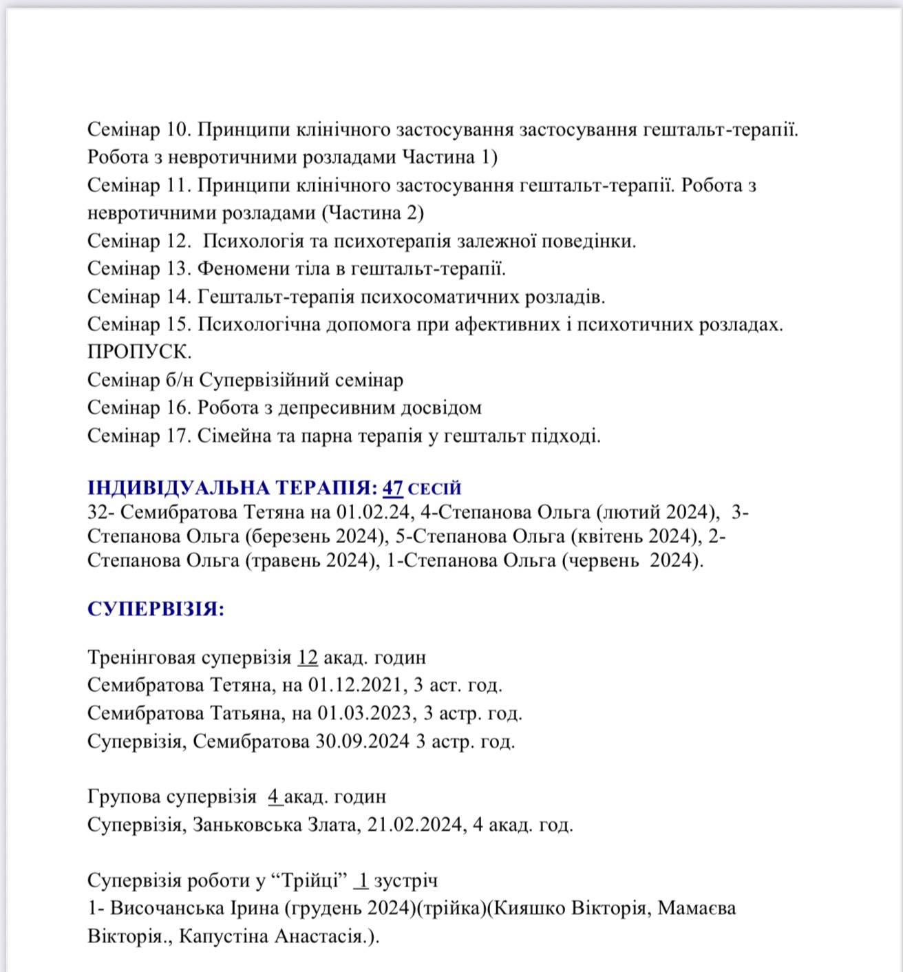 Имею длительную личную терапию, поддерживающую профессиональное развитие и саморефлексию.