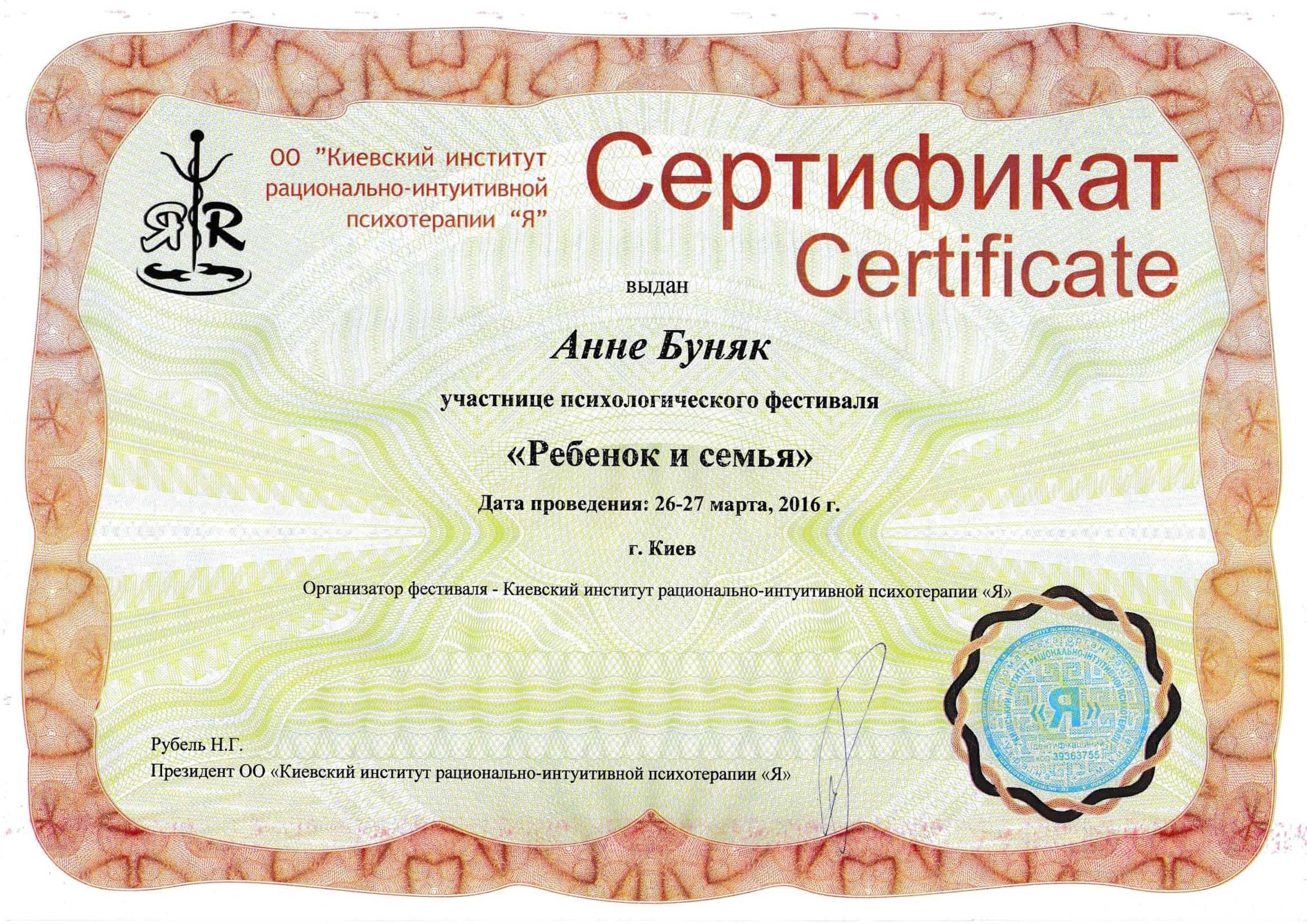 Сертификаты: