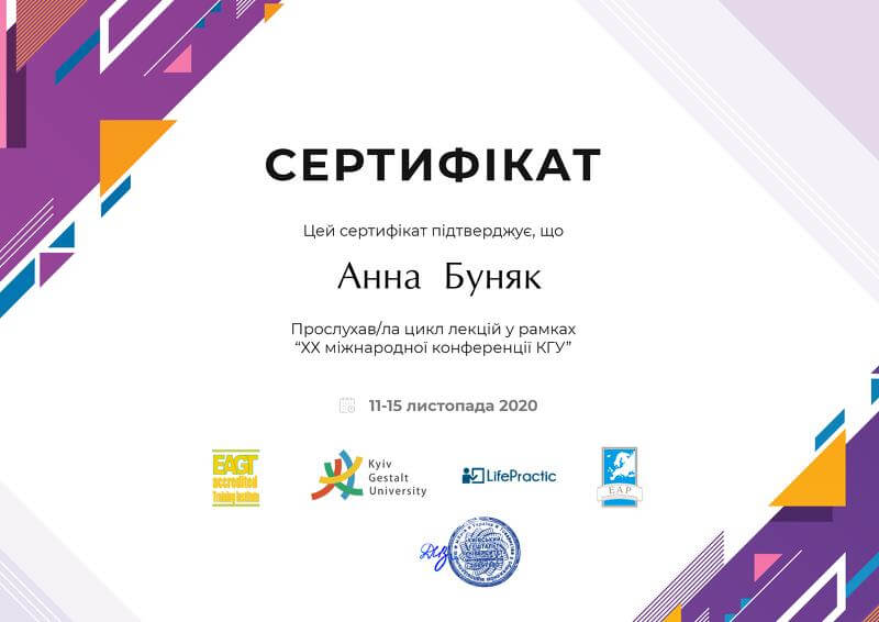 Сейчас прохожу обучение на курсе "Теория и практика гештальт-терапии" (2 ступень УГИ) и на Специализации УГИ "Клиническая гештальт-терапия"