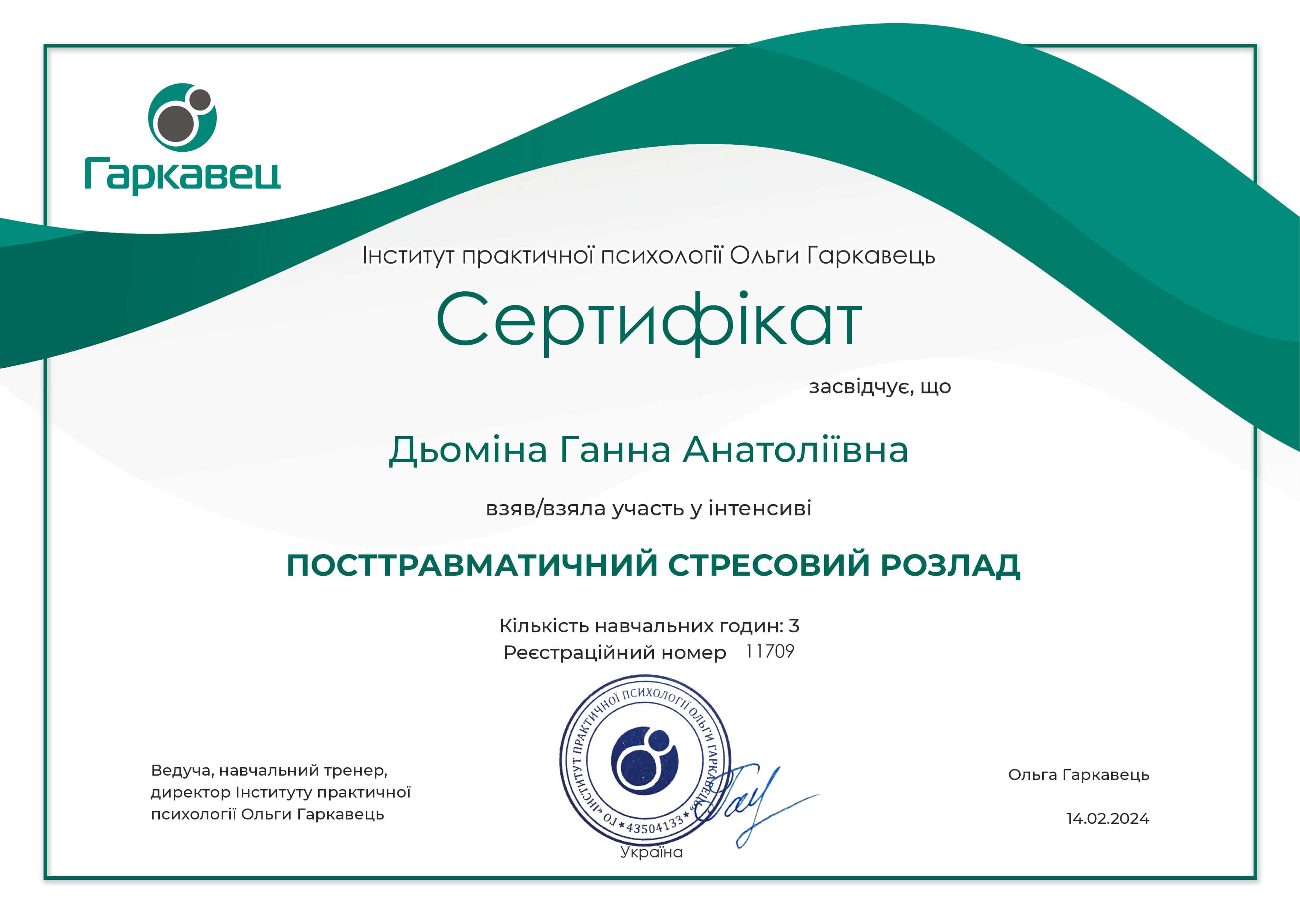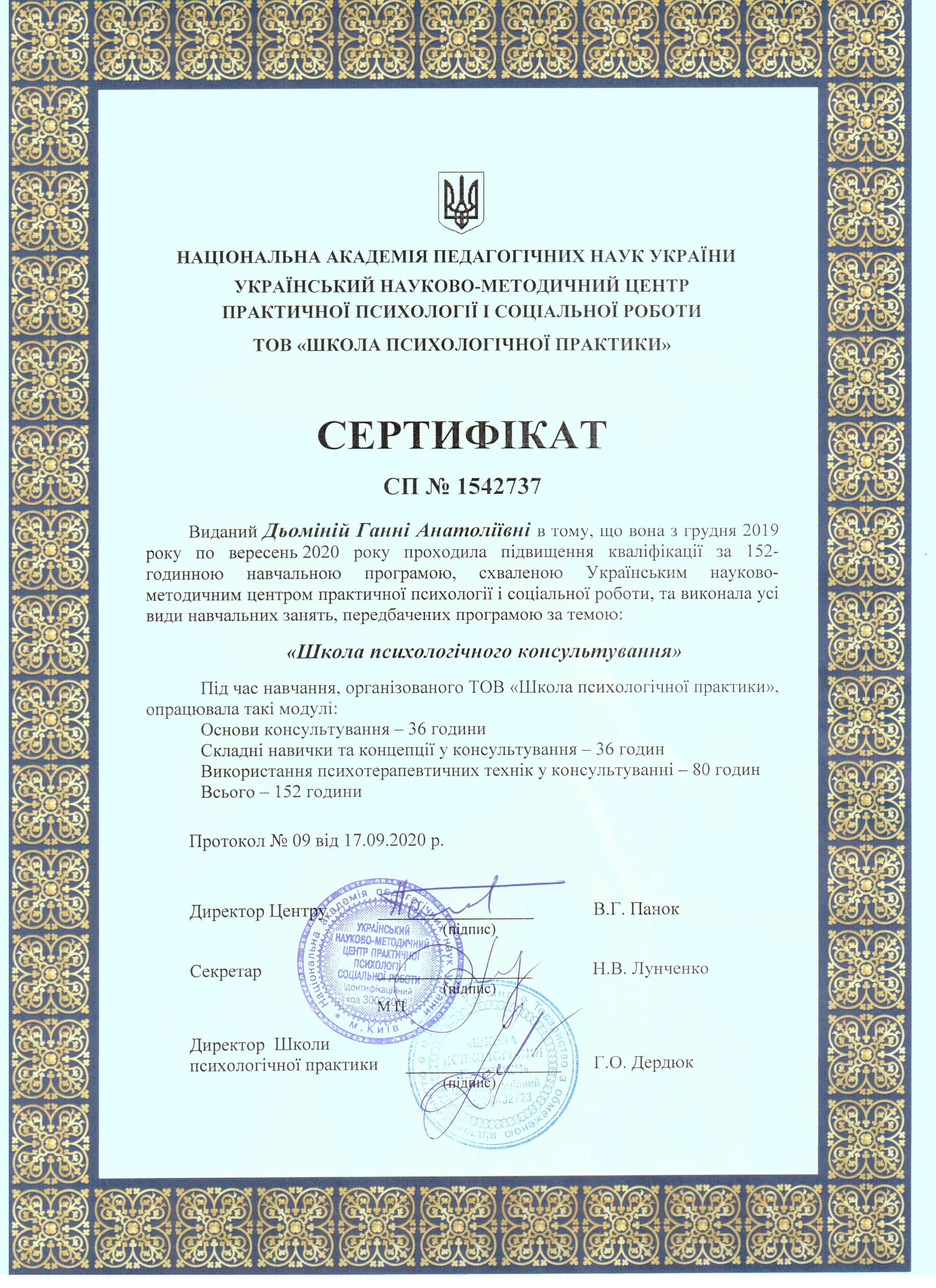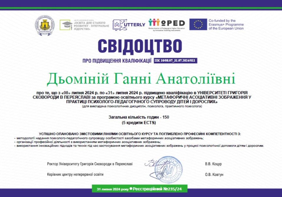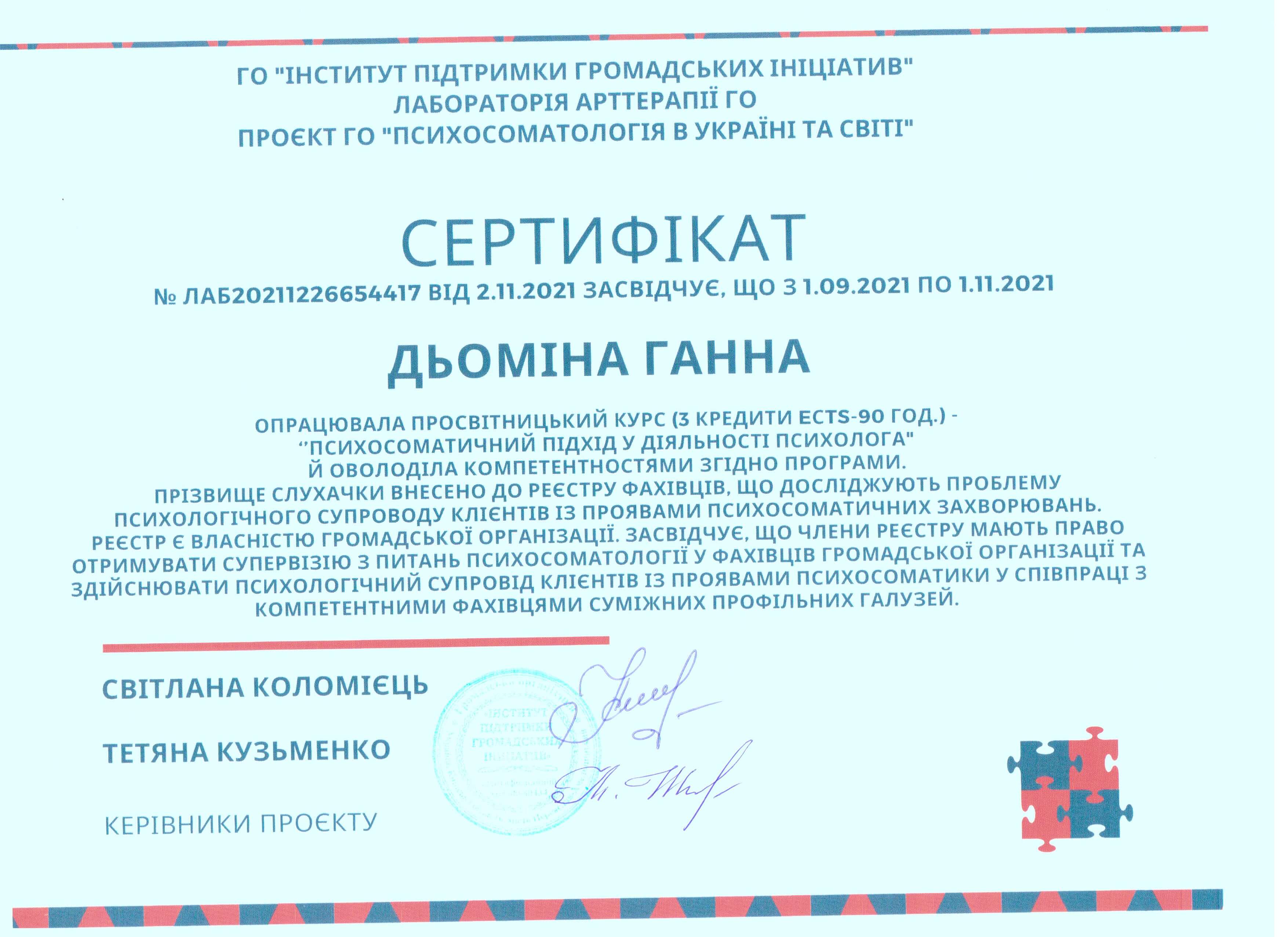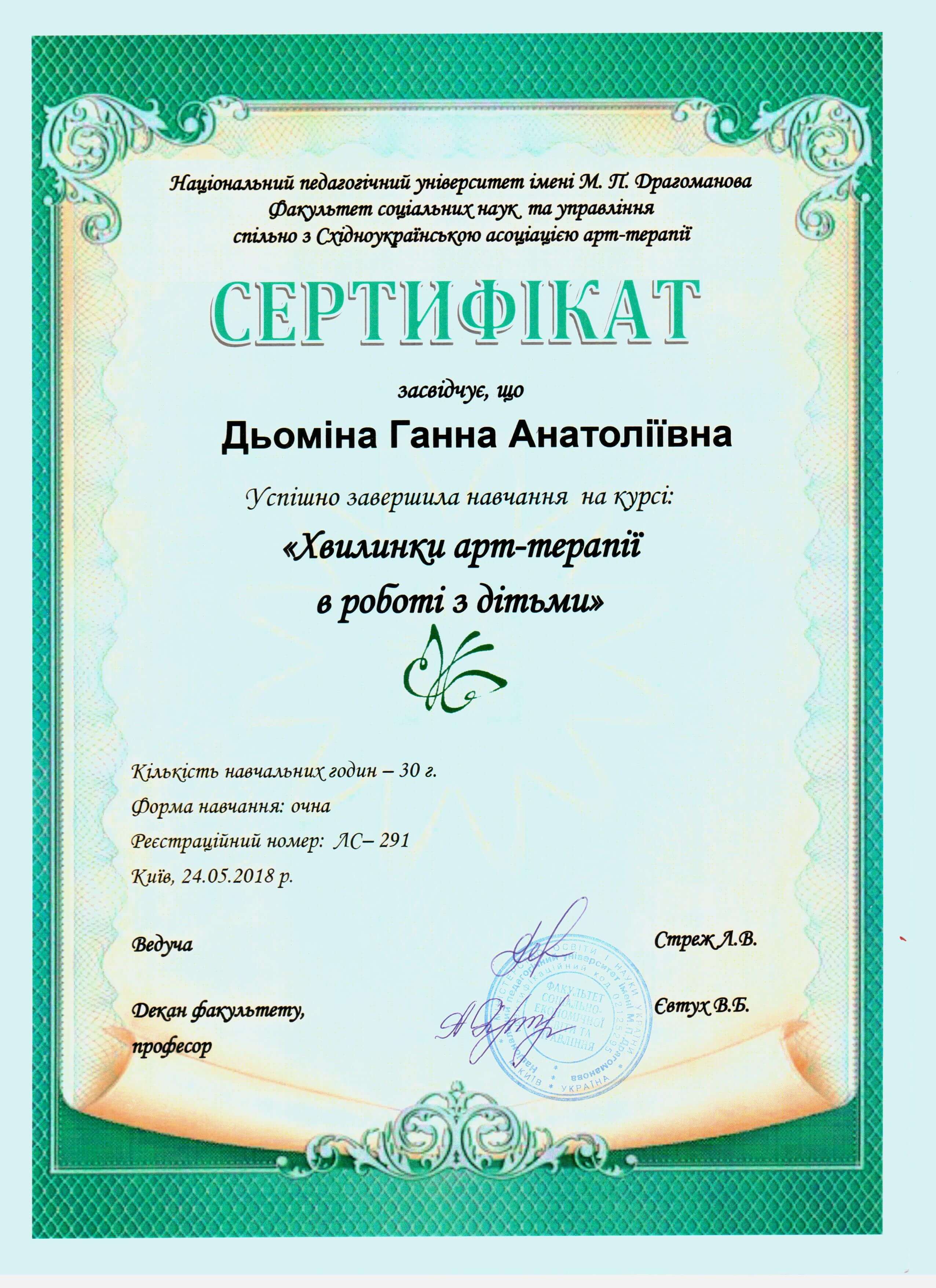 - Использование арт-терапевтического подхода в психологическом консультировании и психотерапии (72 ч.),