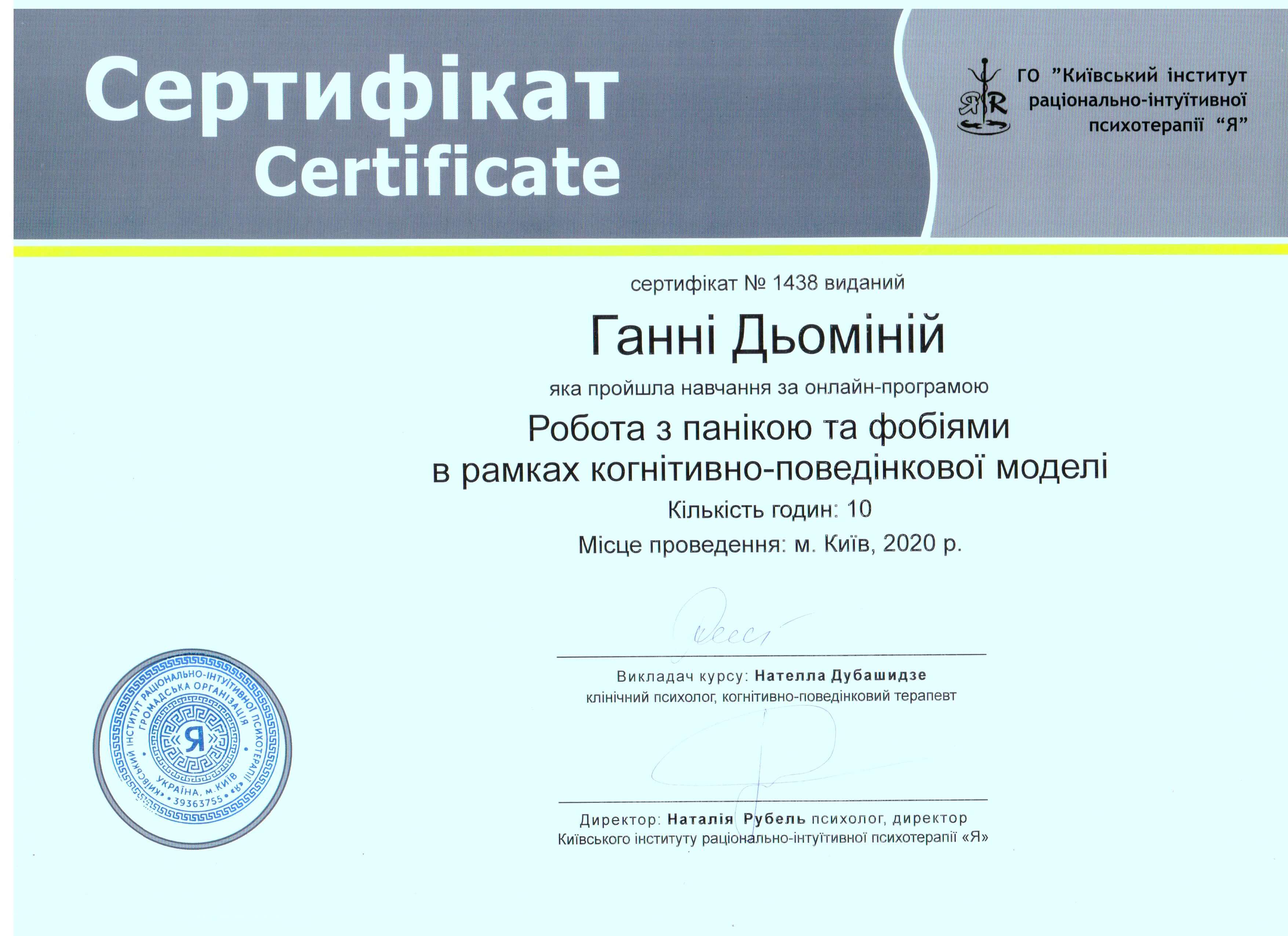 - Работа с паникой, фобией и тревожными расстройствами (20 ч.),