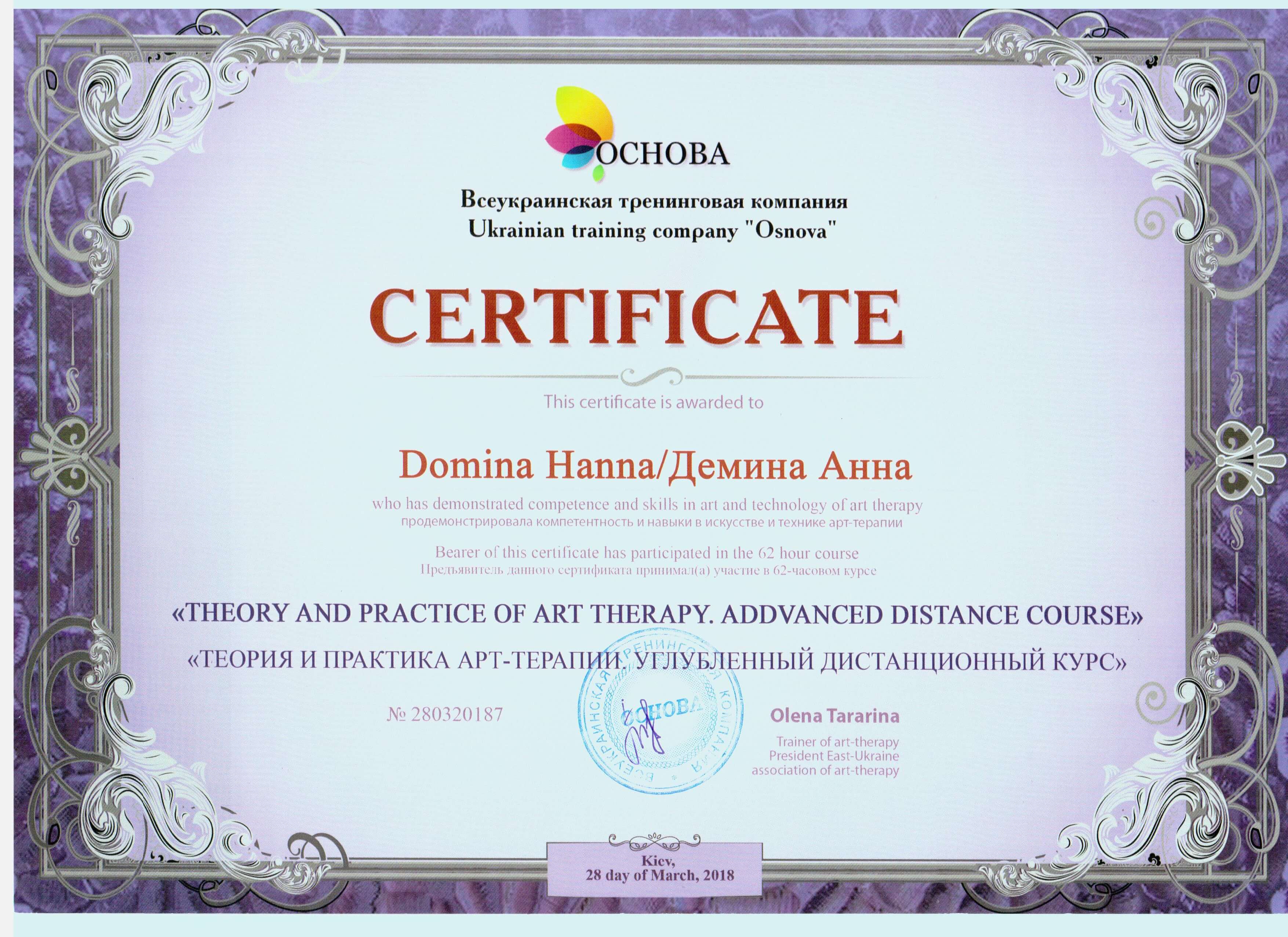 - Теория и практика арт-терапии, углубленный дистанционный курс (62 ч.),