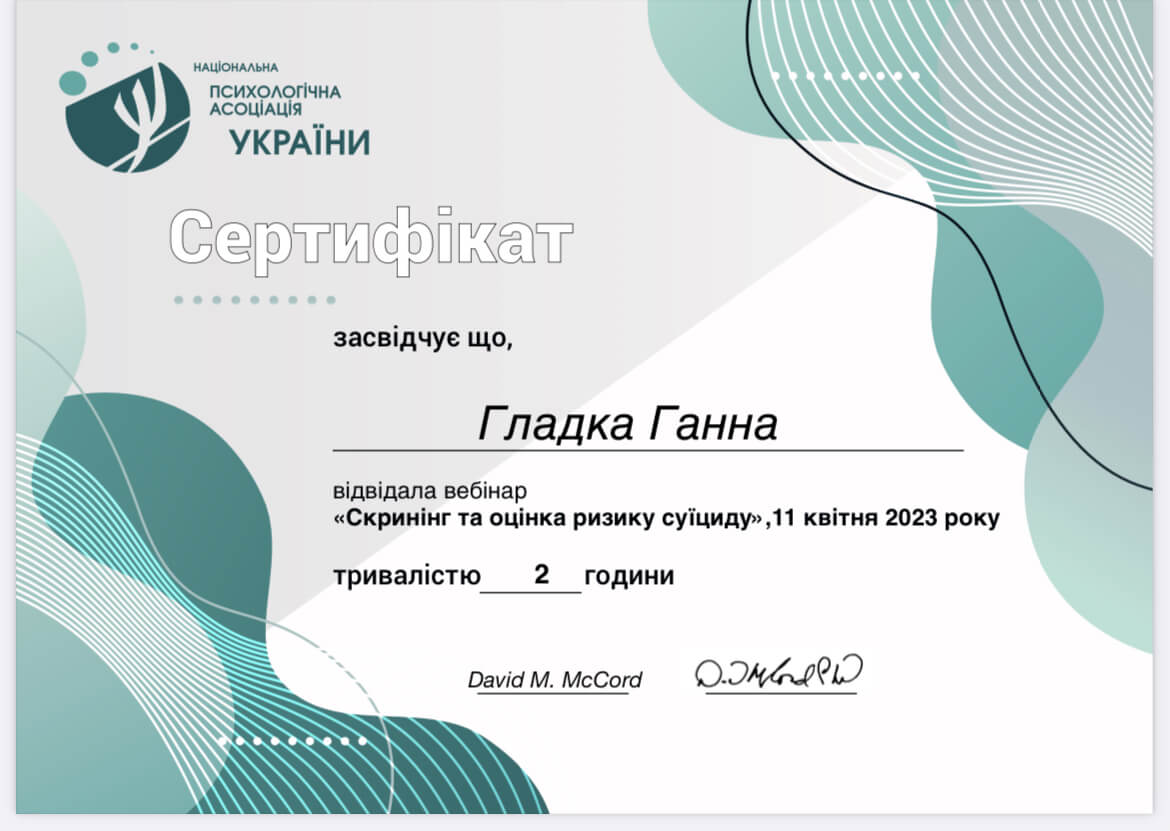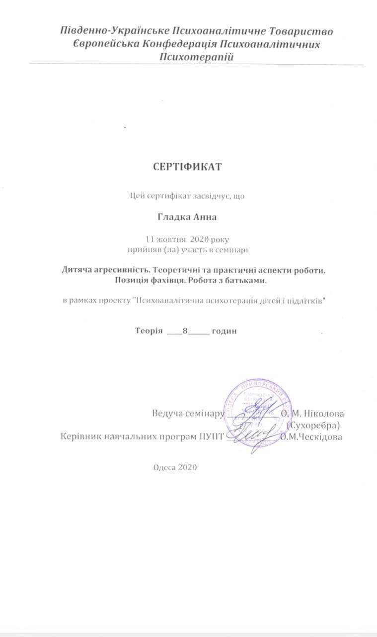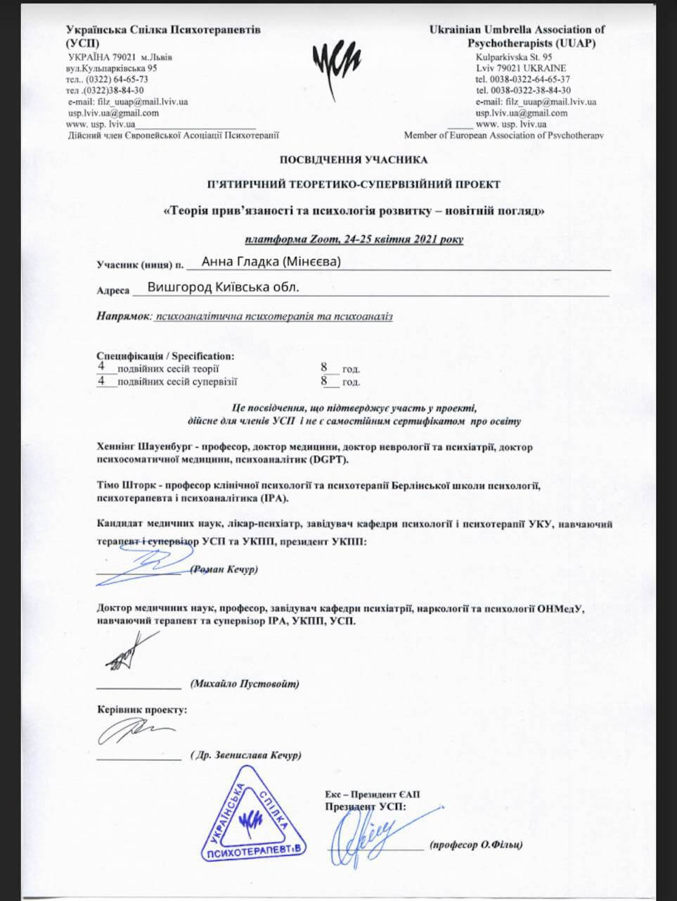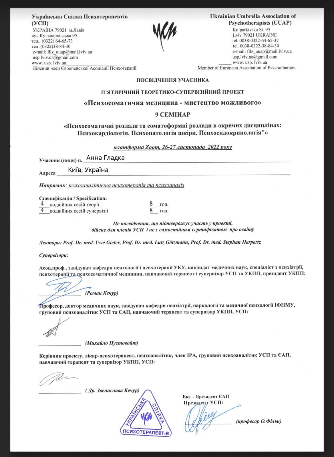 Украинская школа группового психоанализа, групповой психоаналитик 2018-2023.