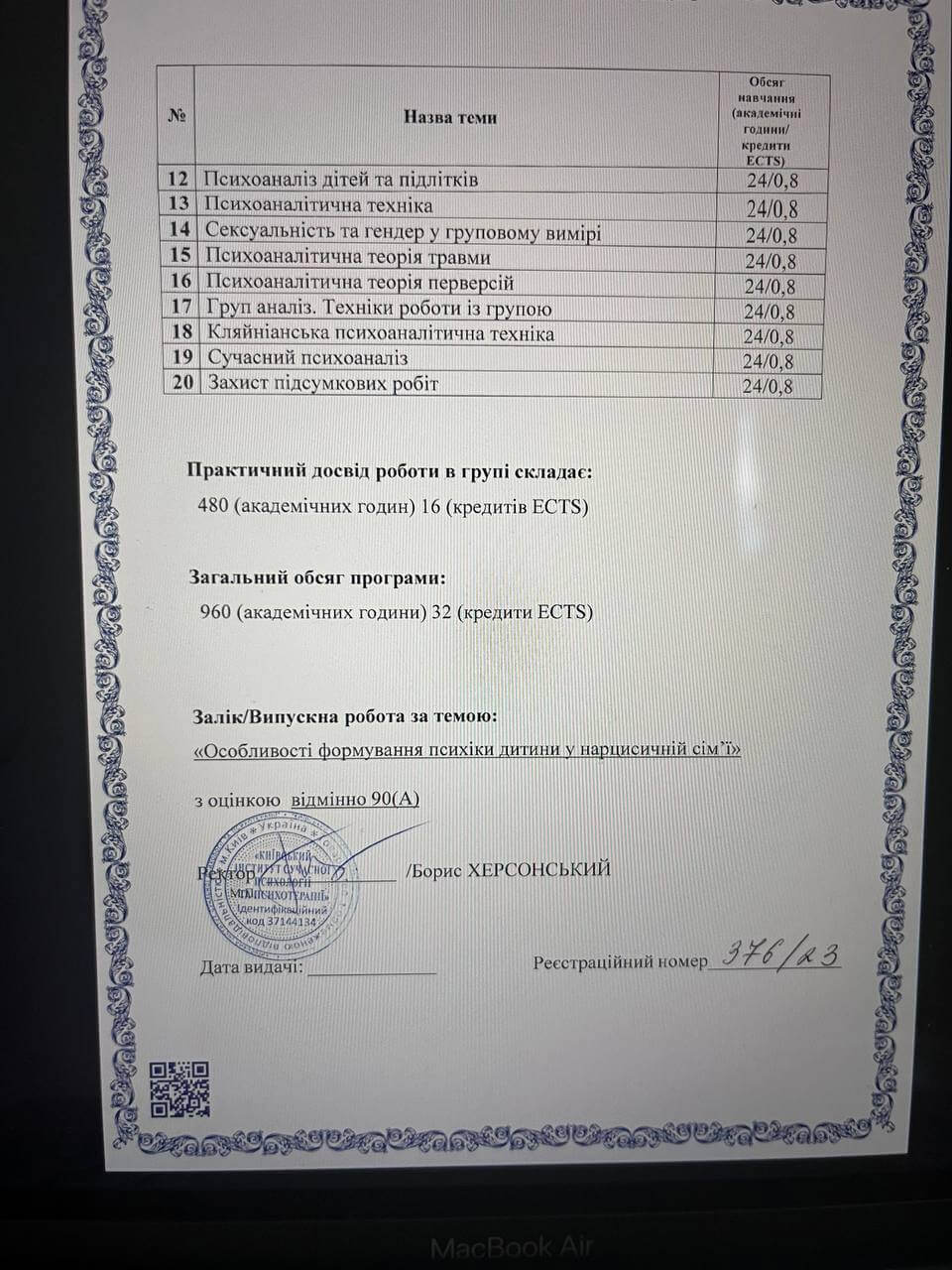 Киевский институт современной психологии и психотерапии 2020 г., магистр