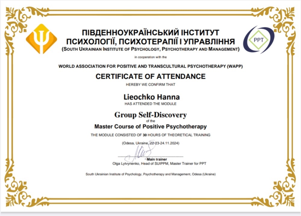 ➢ЮЖНОУКРАИНСКИЙ ИНСТИТУТ ПСИХОЛОГИИ, ПСИХОТЕРАПИИ И УПРАВЛЕНИЯ