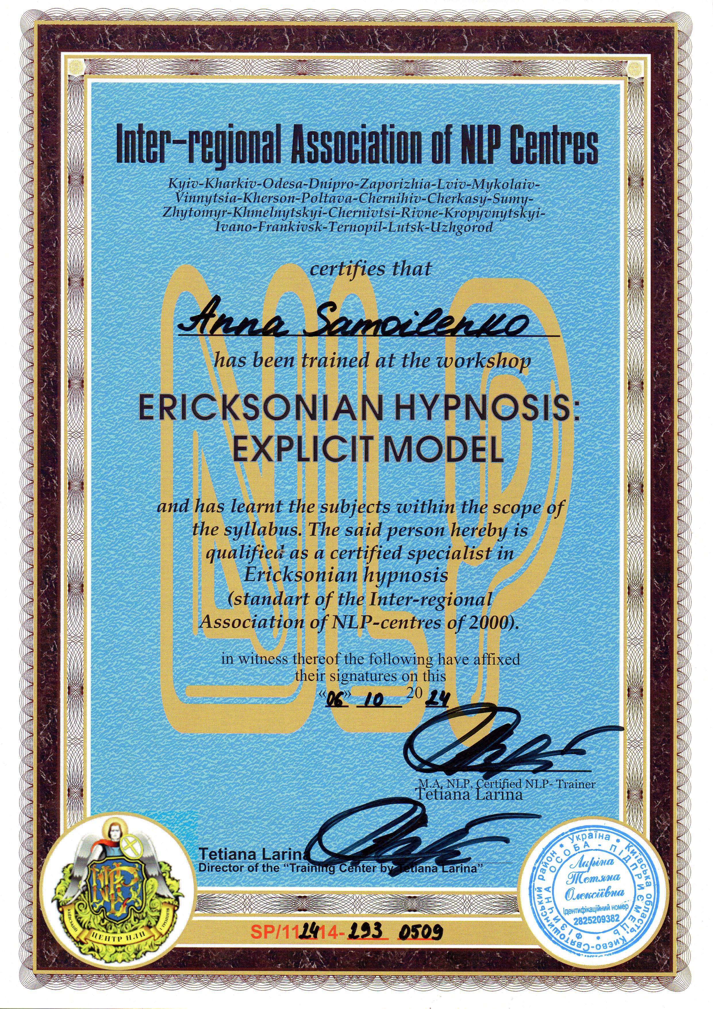 Тренинговый центр Татьяны Лариной. Эриксоновский гипноз