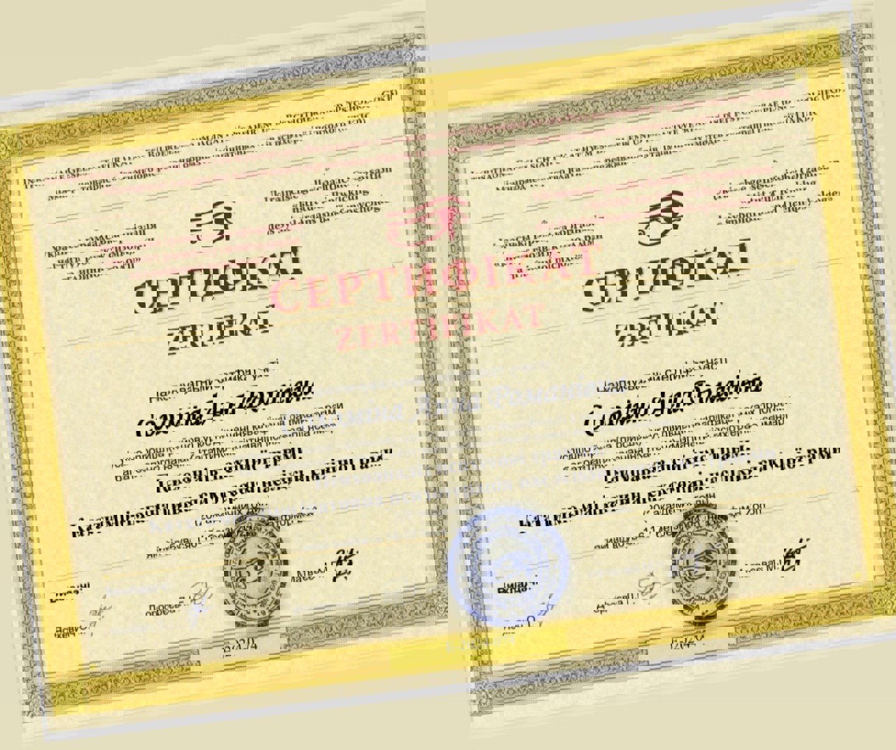Сертификаты: