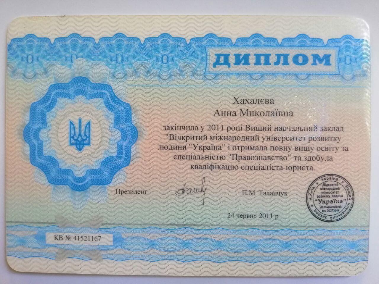 ВУЗы "Открытый международный университет развития человека "Украина", 2011 г.;