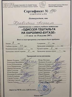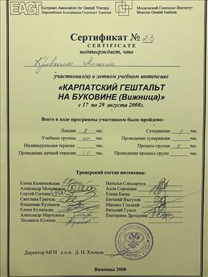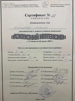 Московский Гештальт Институт. Сертифицированный гештальт-тепапевт.