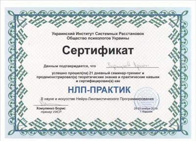 Дополнительные курсы с сертифицированной гарантией усвоения : 1) НЛП Мастер.