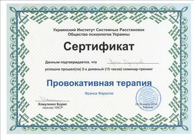 Образование Вуз: ХНПУ им. Г. С. Сковороды '15 Факультет: Психологии и социологии Кафедра: Практической психологии Форма обучения: Очное отделение Статус: Выпускник специалист (магистр)