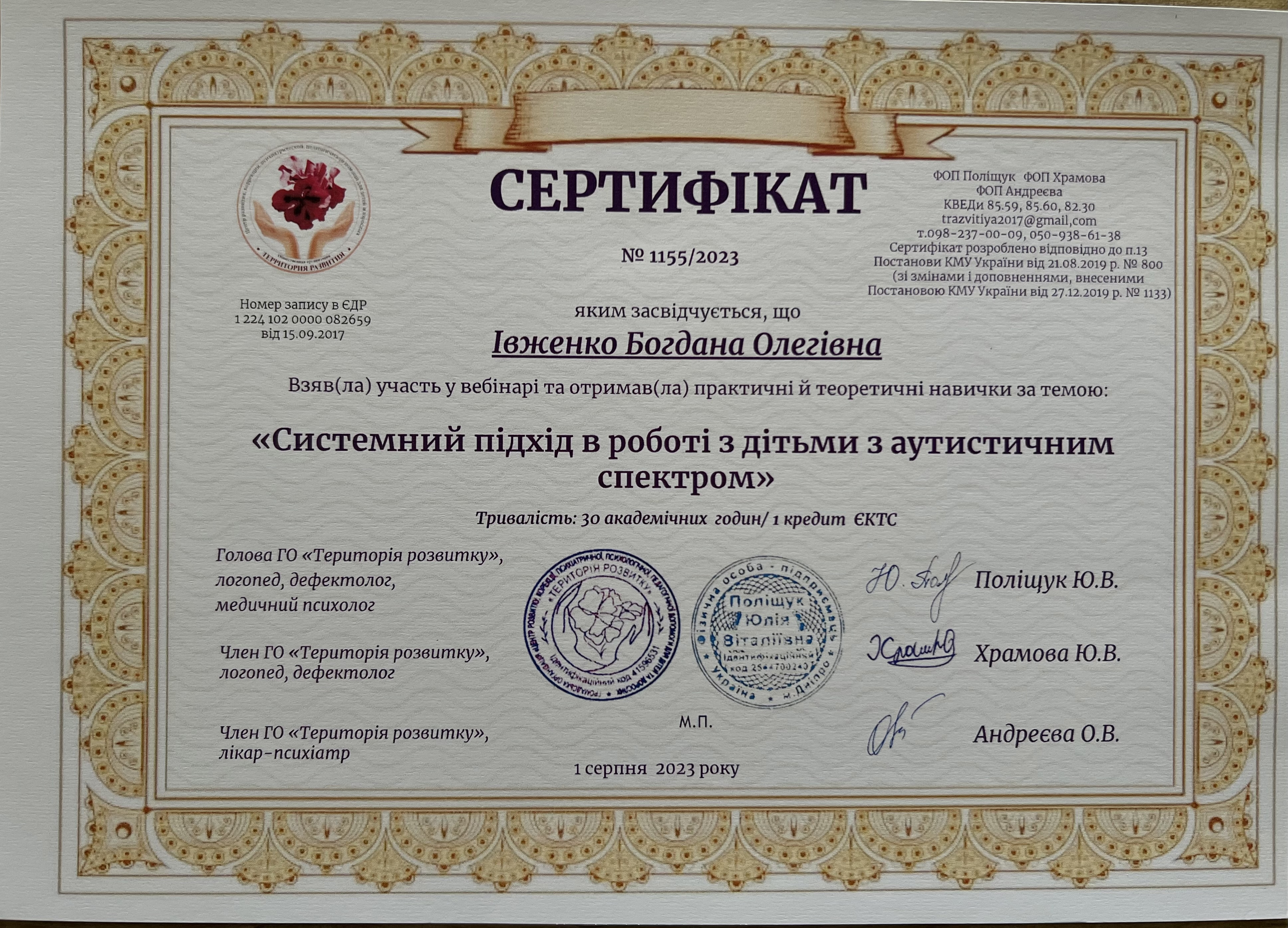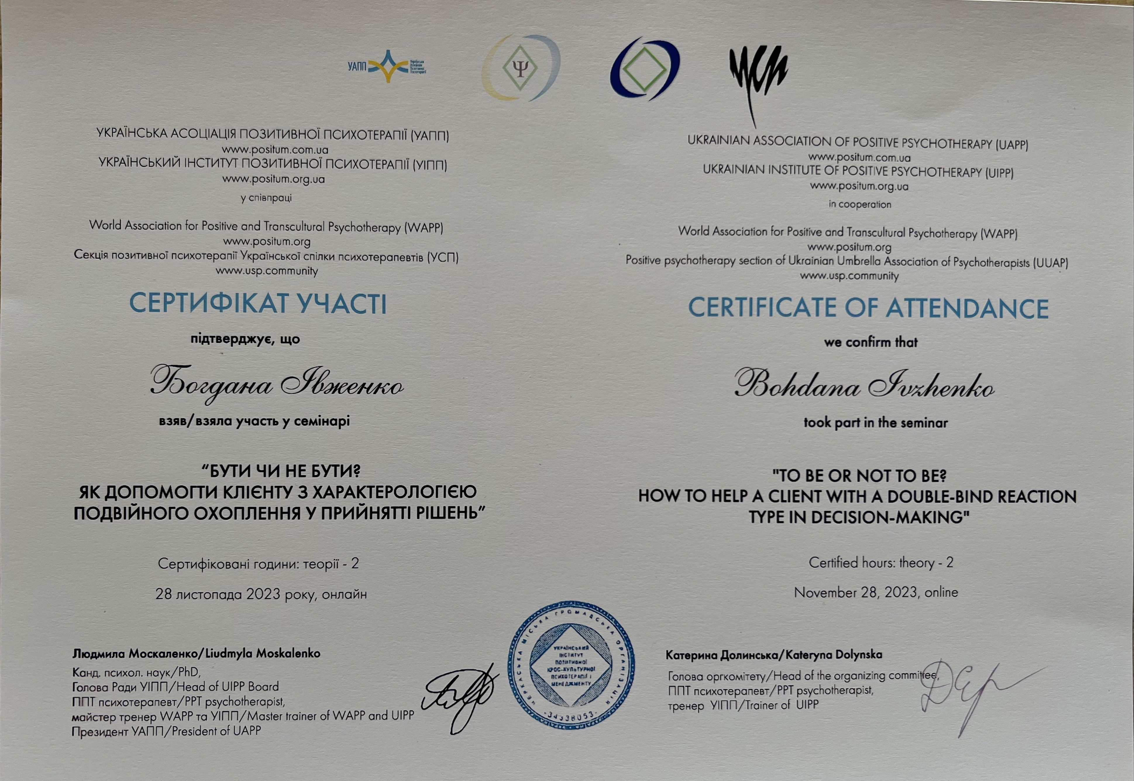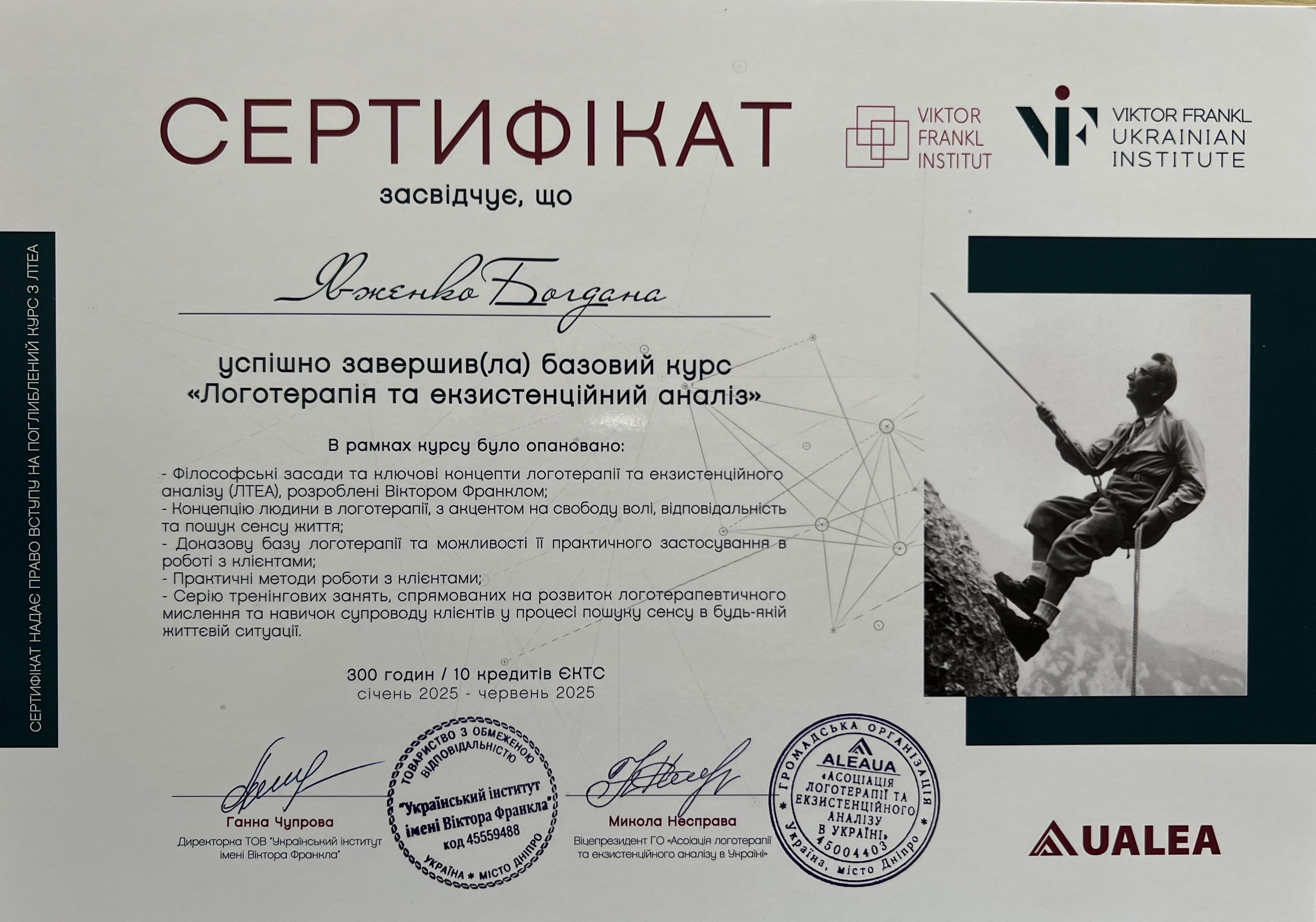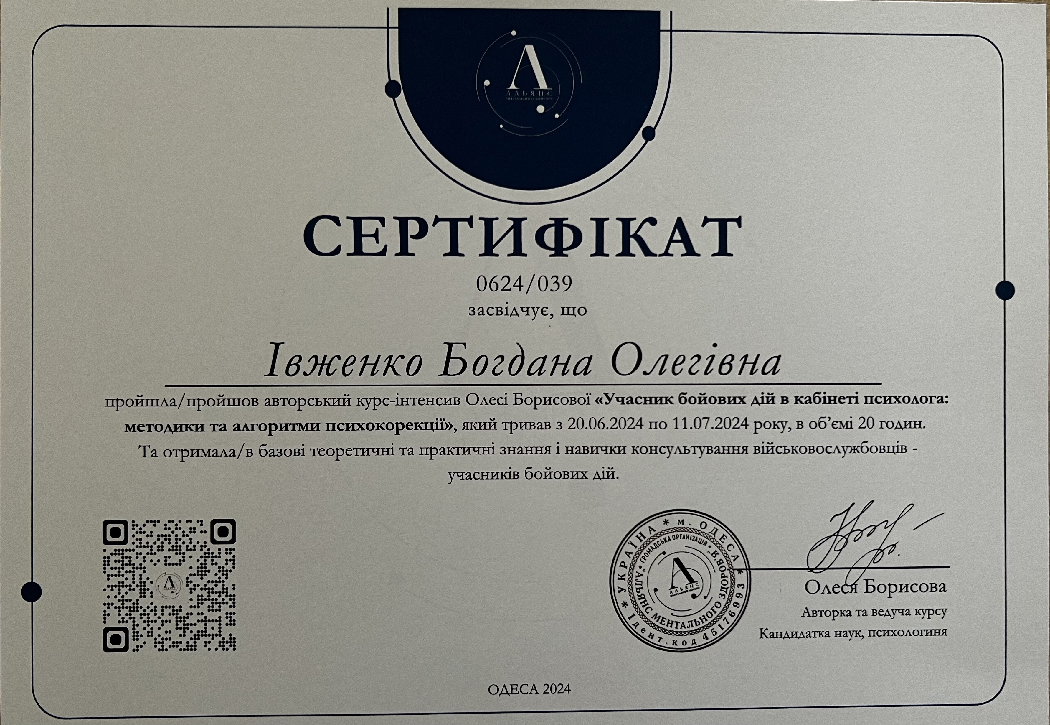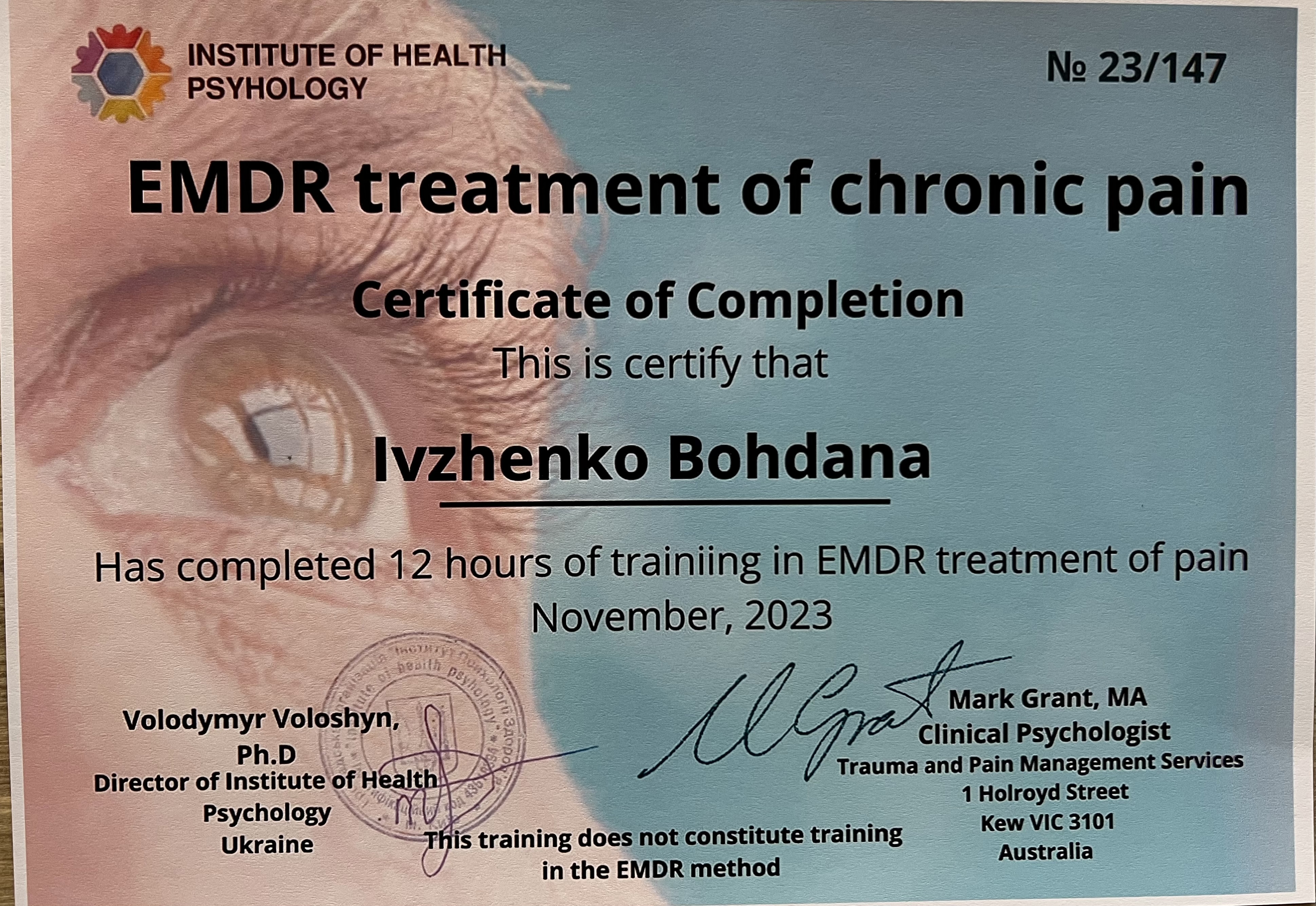 Клиническая психология; курс по зависимостям; Коррекционная деятельность с особыми детьми – ин-т им. Шевченко г. Киев