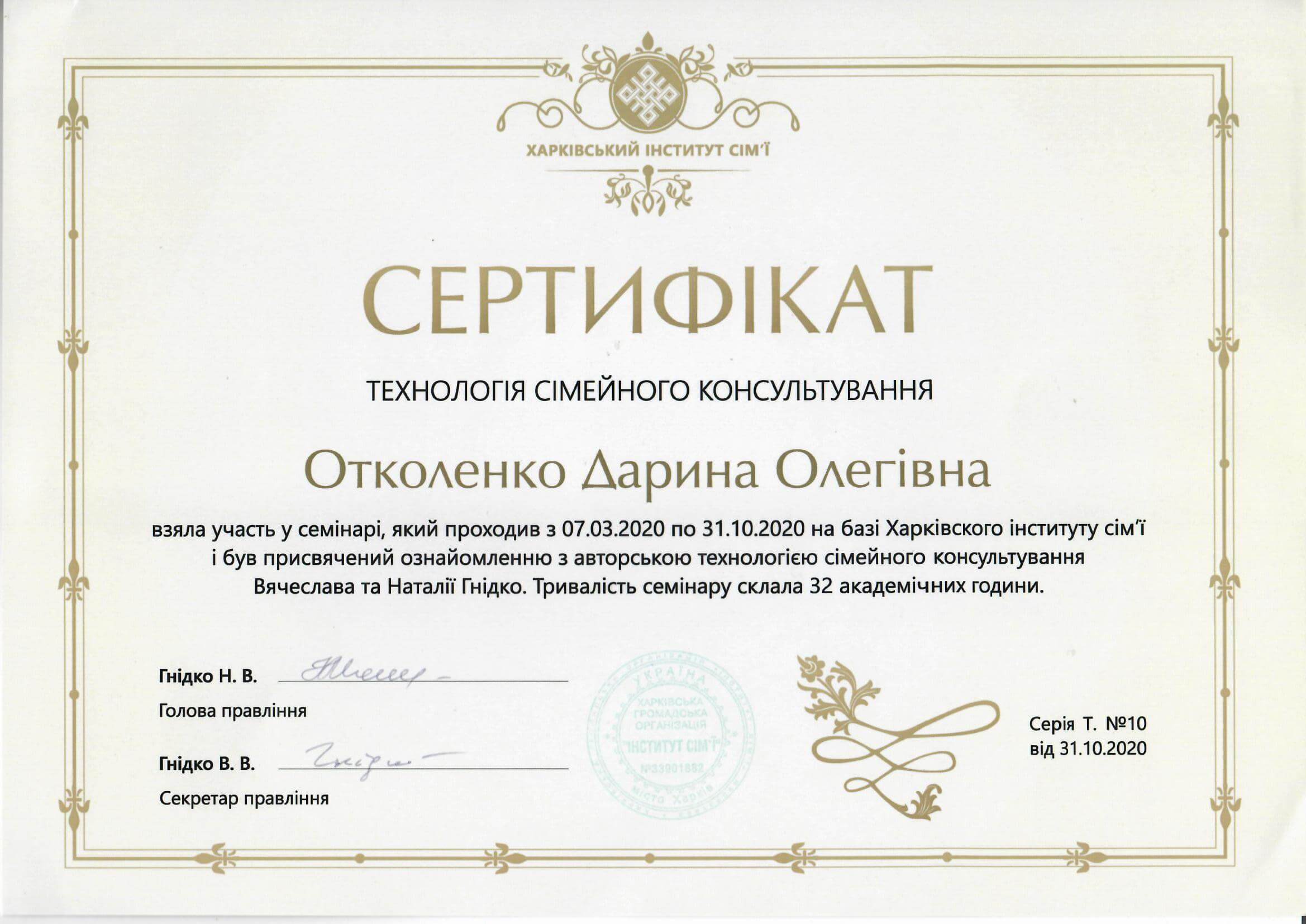 Харьковский Национальный университет имени В.Н. Каразина, факультет психологии, специальность: психолог; преподаватель , 2008 г