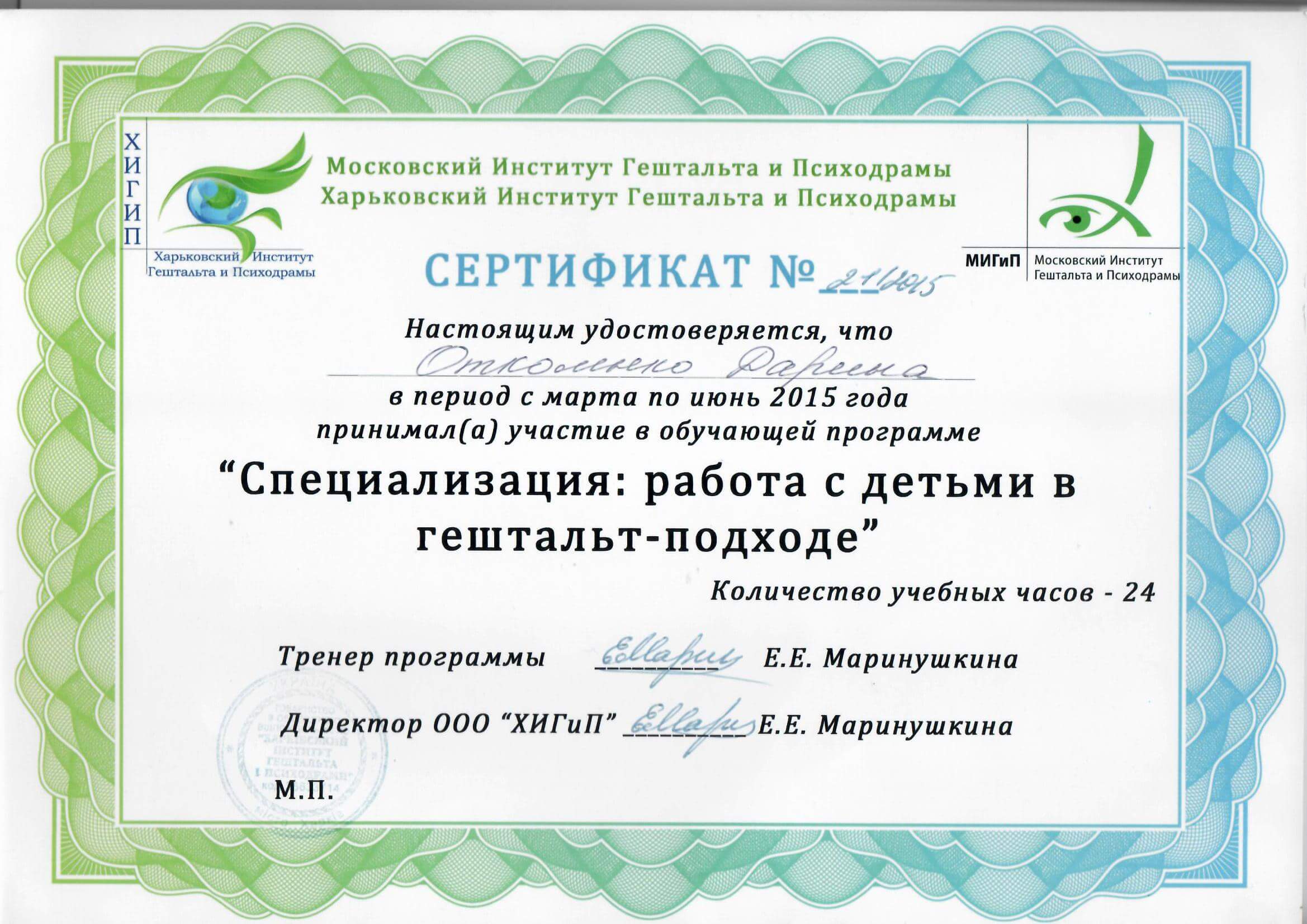 Обучающая программа "Специализация: работа с детьми в гештальт подходе"