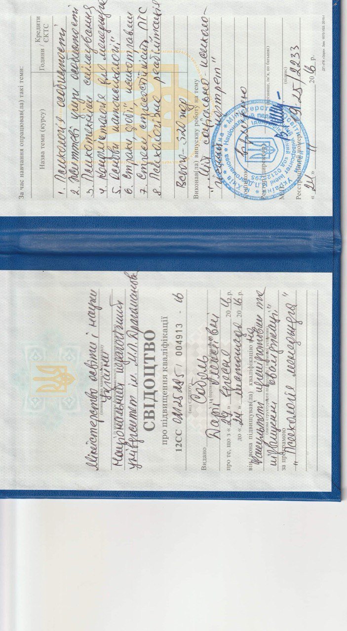 Психология интересовала меня всегда, но поступить на психологию я не решилась, потому что считала, что мое любопытство спровоцировано собственной потребностью, а не желанием помогать другим. Мне показалось это «неправильным», не нравственным. Но психология все равно догнала меня. Во время своей офисной карьеры я овладела коучингом для работы с командой. И со временем ко мне стали обращаться коллеги не только из моей команды, а впоследствии и не только с рабочими вопросами. И я поняла, что 1) я все же имею способность помогать людям, 2) коучинг не все запросы может решить, 3) мне нужны более глубокие знания по психологии, чтобы помогать эффективнее. Поэтому я стала учиться дальше: повысила квалификацию к психологу и закончила 4-летний курс транзактного анализа (продолжаю учиться и дальше). Параллельно с этим я пошла в личную терапию, потому что психолог работает собой и не имеет права распространять своих тараканов. На сегодняшний день у меня более 370 часов собственного опыта в индивидуальной и групповой терапии в разных направлениях психологии (из них 150+ именно в ТА). Потому знаю на себе, как это все работает.