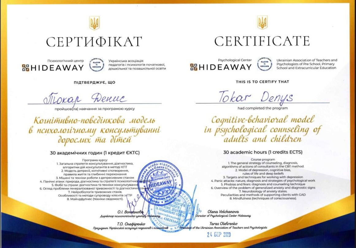 • Курсы по когнитивно-поведенческой терапии, эмоционально-фокусированной терапии и т.д. (при наличии)