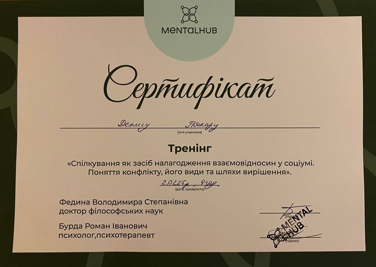Практикующий психолог, специалист в гештальт-терапии и методе М. Мюррей, НЛП Терапевт. Опыт работы с индивидуальными клиентами и группами 3 года. Помогаю клиентам в разрешении личностных кризисов, развитии эмоционального интеллекта, преодолении тревожных и стрессовых состояний. Ориентируюсь на эмпатийный и поддерживающий подход, помогая людям найти собственные ресурсы для перемен. Как психолог, я стараюсь создать пространство для личностного развития, где каждый клиент может почувствовать себя услышанным, понимаемым и принятым. Я никогда не мечтал быть психологом. С годами приходит понимание, что случайностей не бывает и все в этом мире закономерно. Говорят, что психологами становятся люди, пережившие травматизацию и желающие решить свои личные проблемы за счет профессии. Может быть и так.
